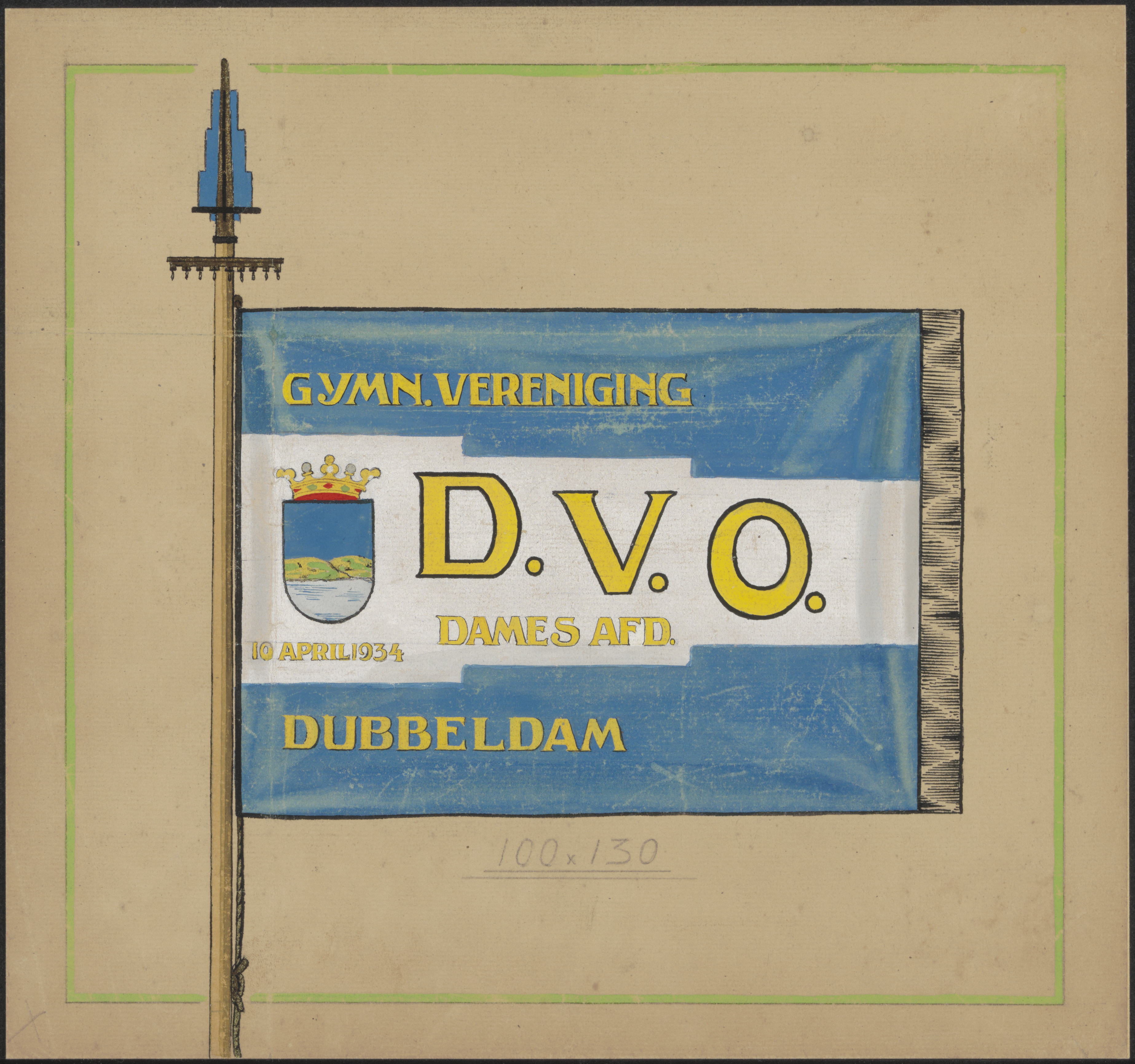 - Een vlag met stok van de Dubbeldamse Gymnastiekclub D.V.O., damesafd., opgericht 10 april 1934 te Dubbeldam.