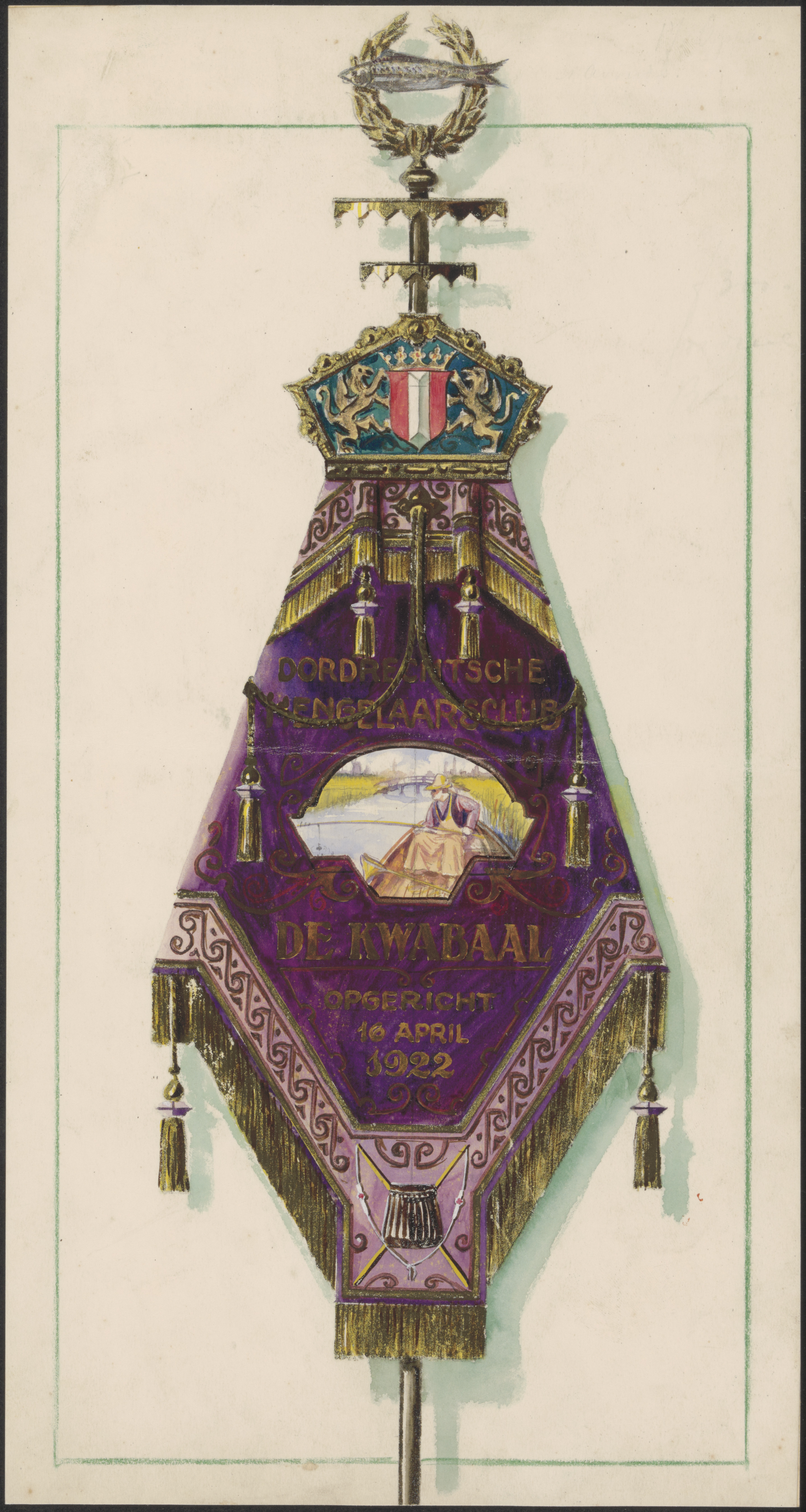 - Een vaandel van de Dordrechtsche Hengelaarsclub 'De Kwabaal', opgericht 16 april 1922.