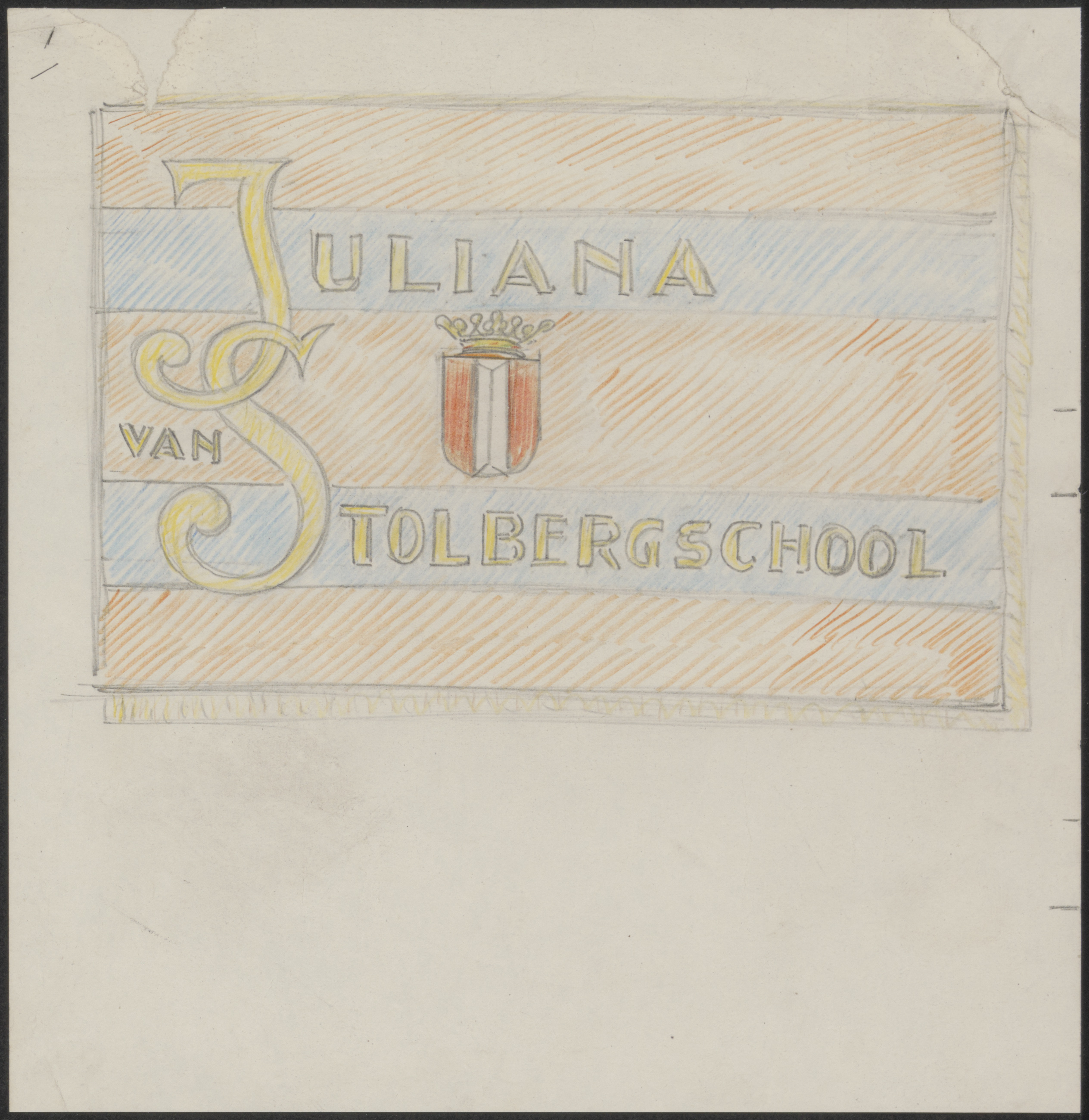 - Een kleurpotloodtekening van de vlag van de 'Juliana van Stolbergschool' te Dordrecht.