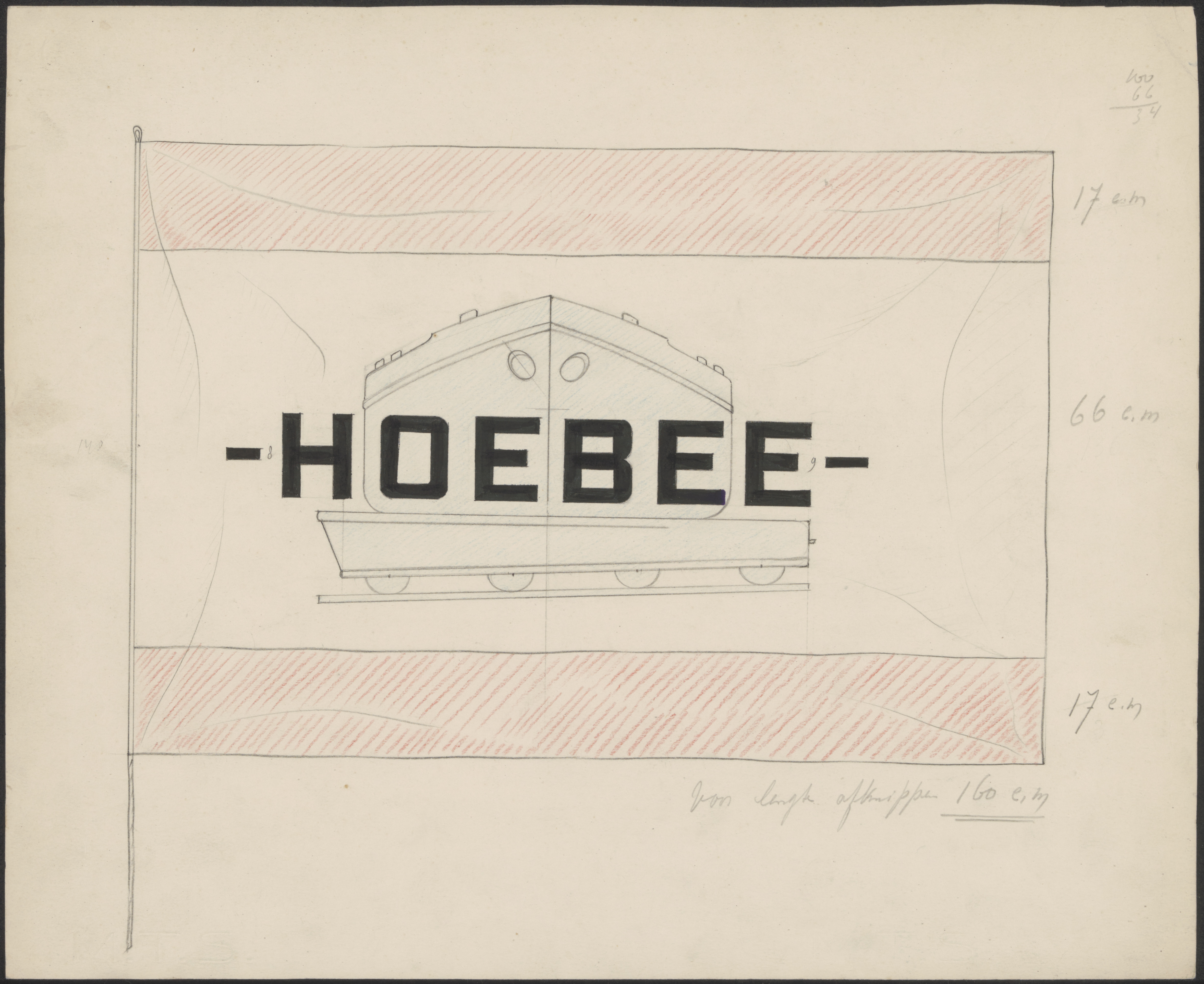 - Een vlag van de scheepswerf Hoebee, Lijnbaan aan de Merwedestraat.