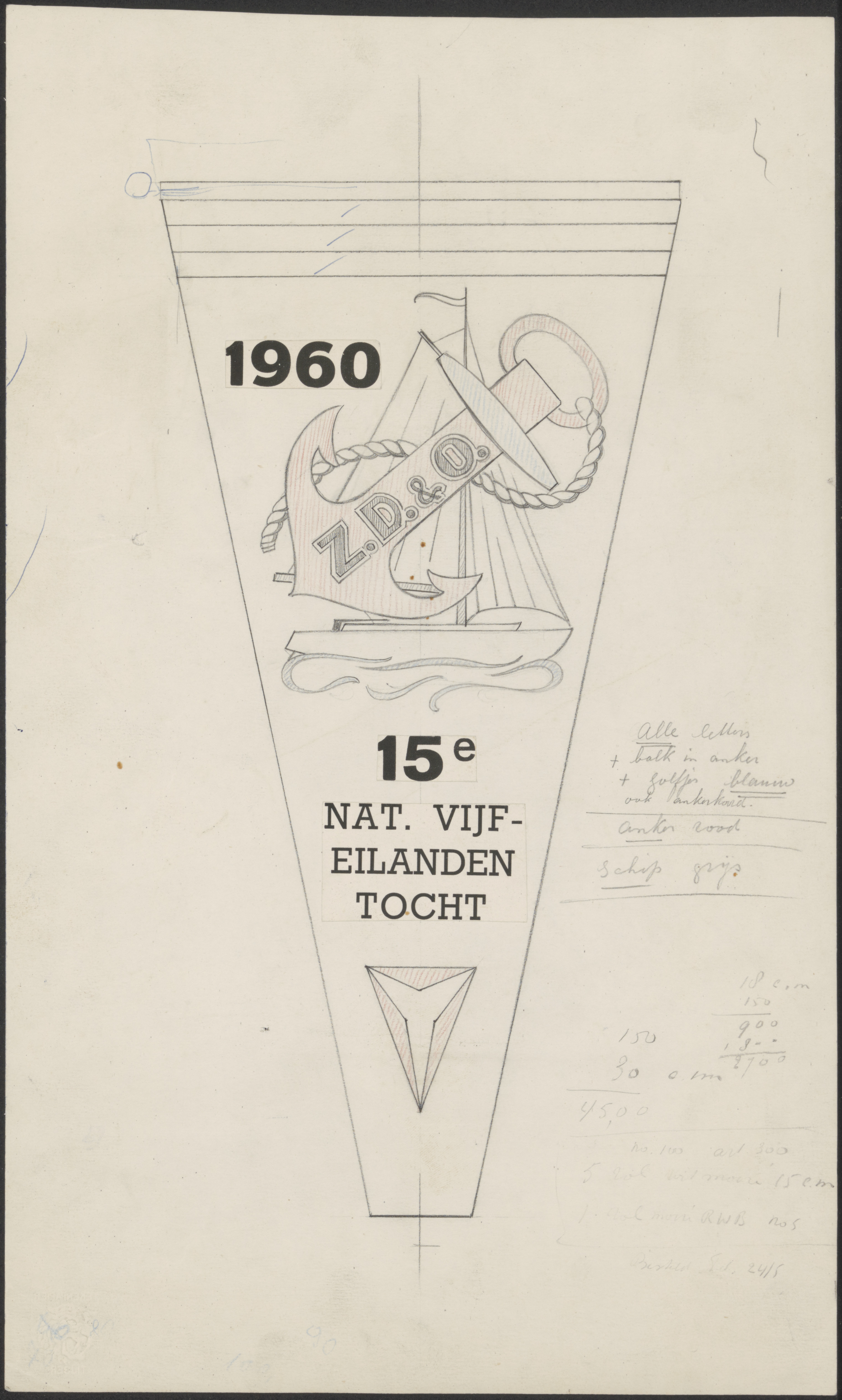 - Een vaantje van de Z.D. en O. (Zeilvereniging Dordrecht en Omstreken) ter gelegenheid van de 15e Nationale Vijfeilandentocht.