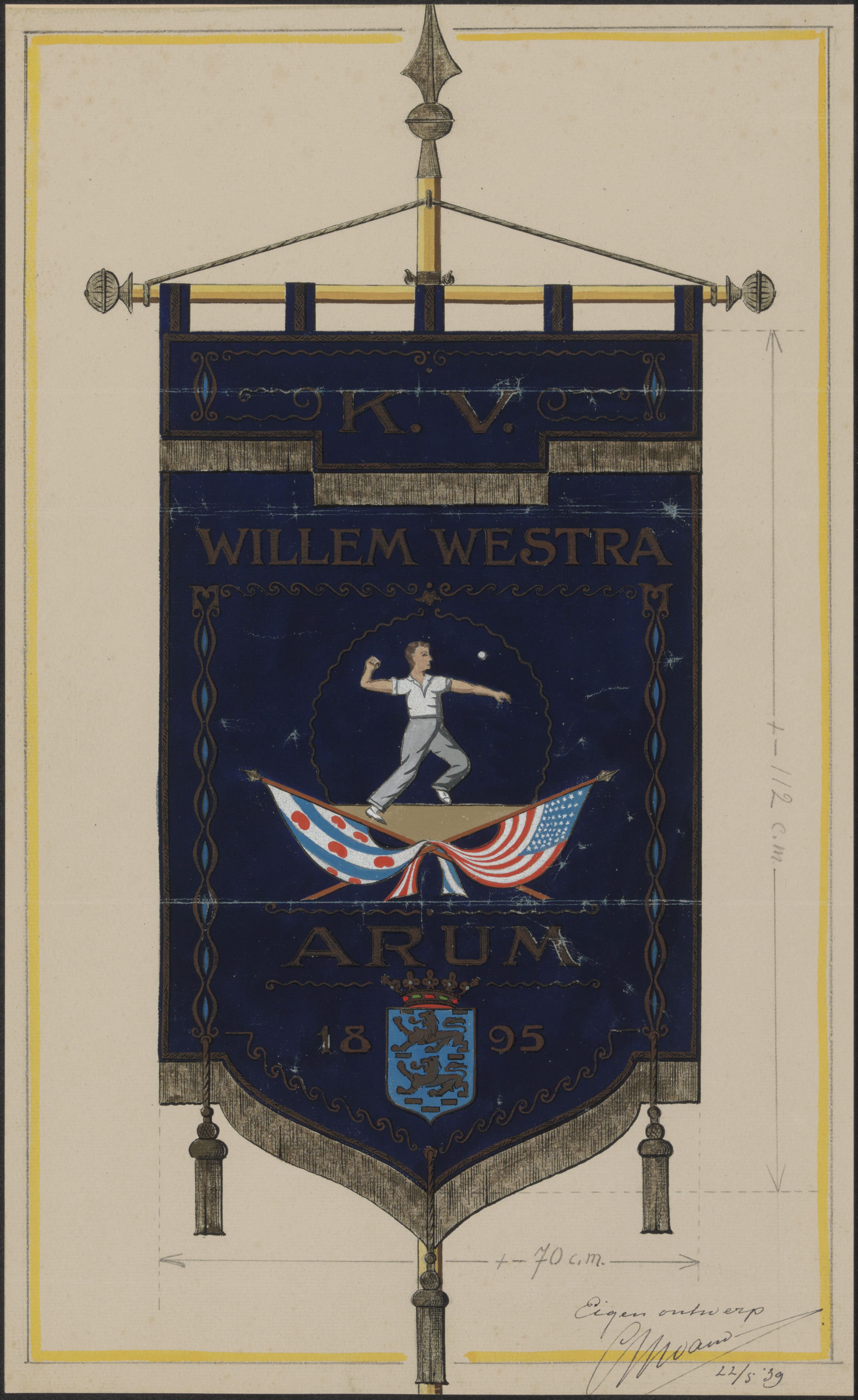 - Een vaandel K.V. Willem Westra te Arum, 1895.