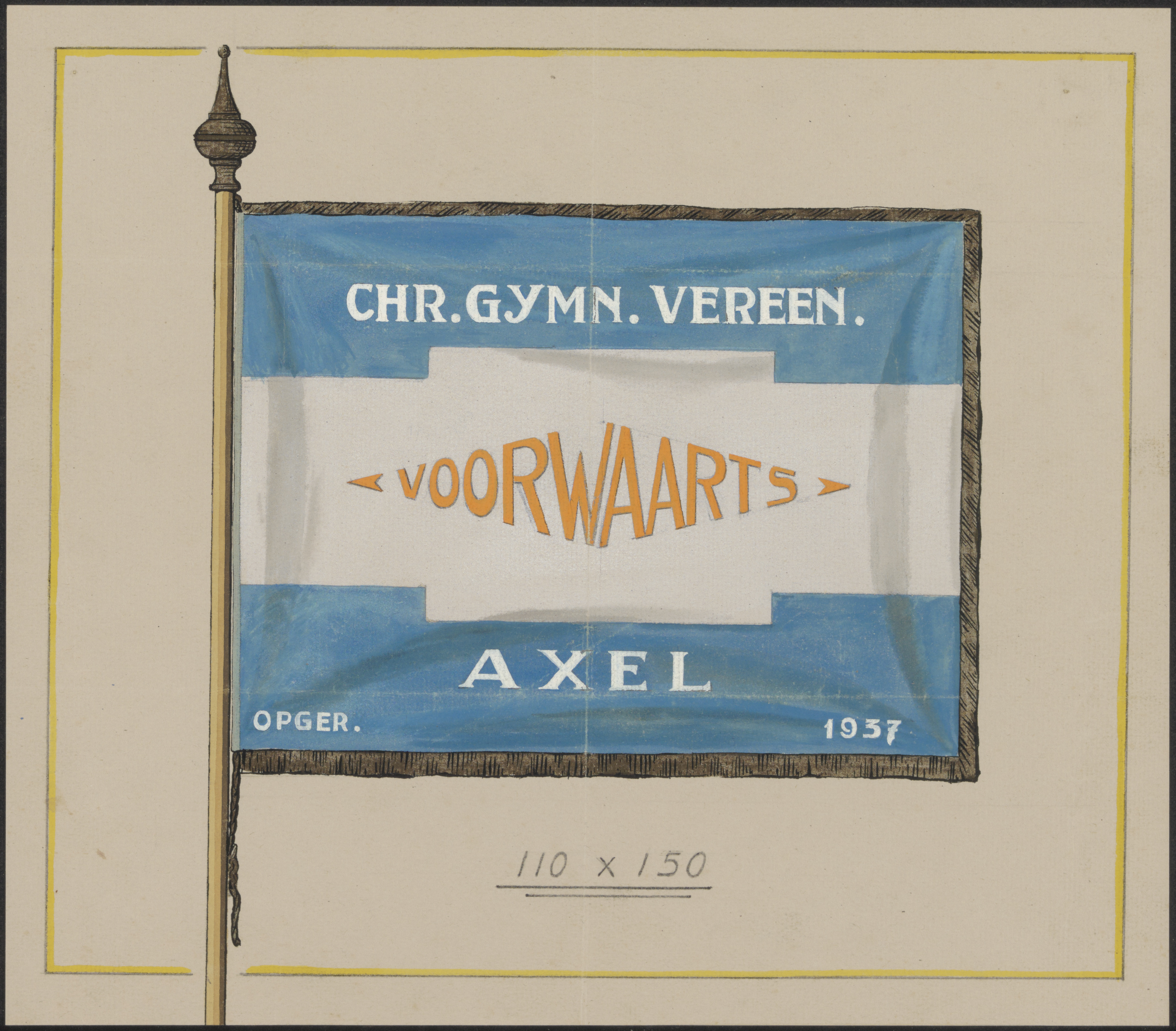 - Een vlag van de Chr. Gymnastiek Vereniging 'Voorwaarts' te Axel, opgericht 1937.
