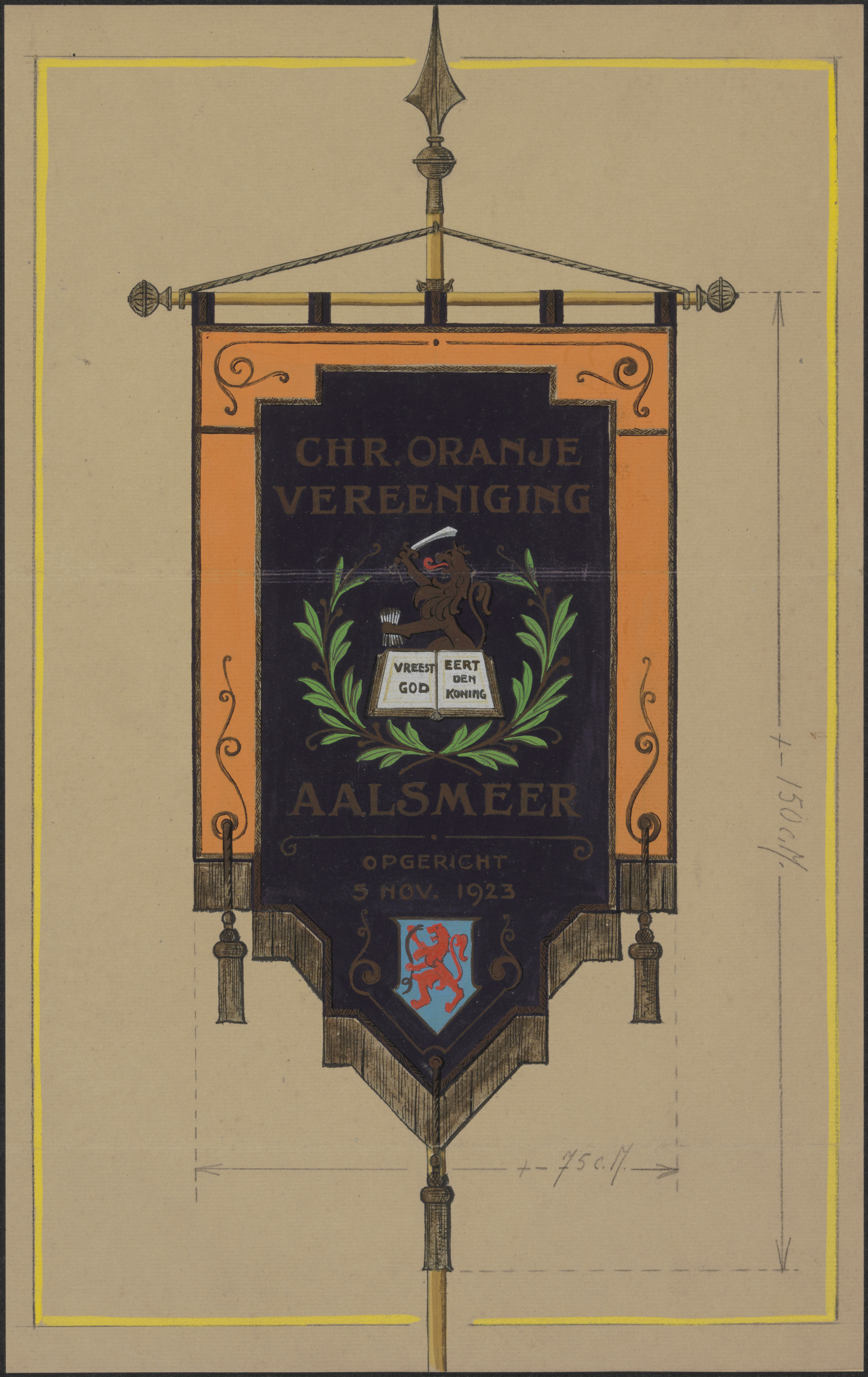 - Een vaandel van de Chr. Oranje Vereniging Aalsmeer, opgericht 5 november 1923.