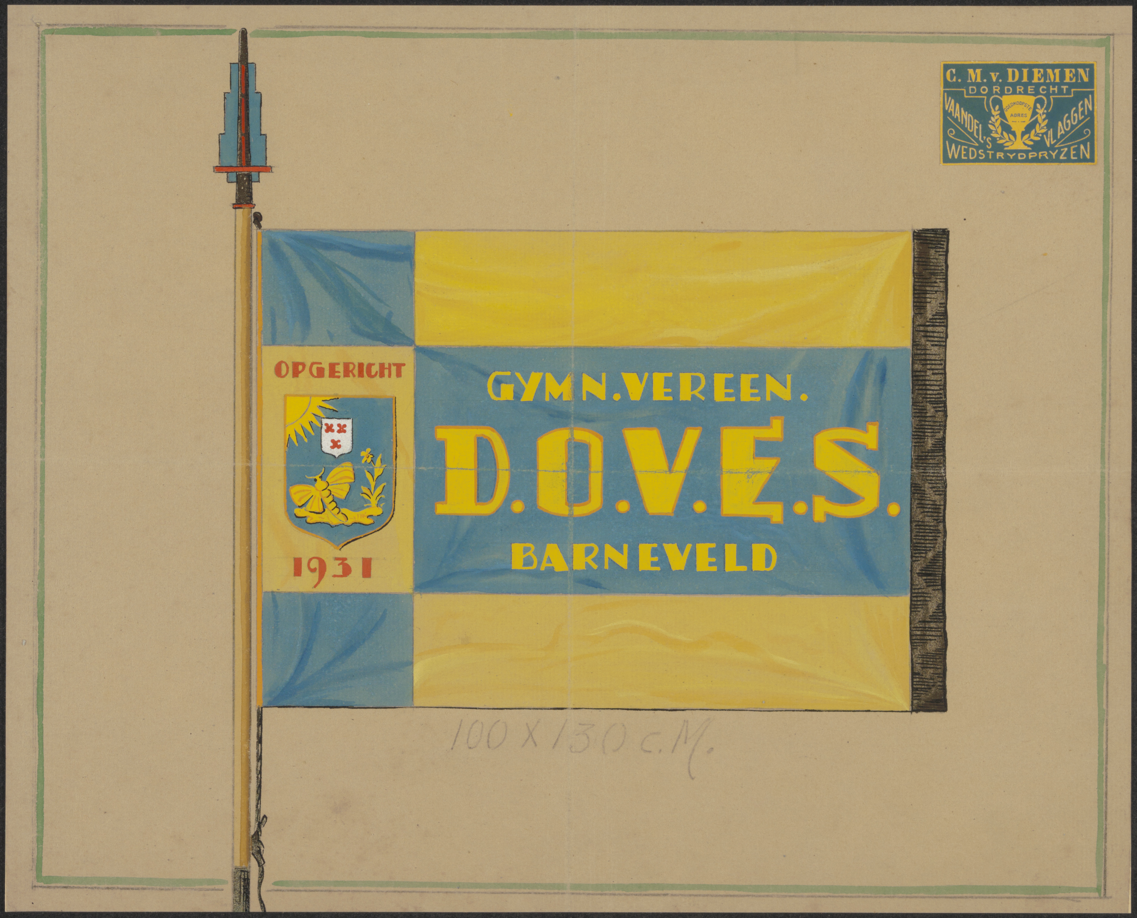 - Een vlag van de Gymnastiekvereniging D.O.V.E.S. te Barneveld, opgericht 1931.