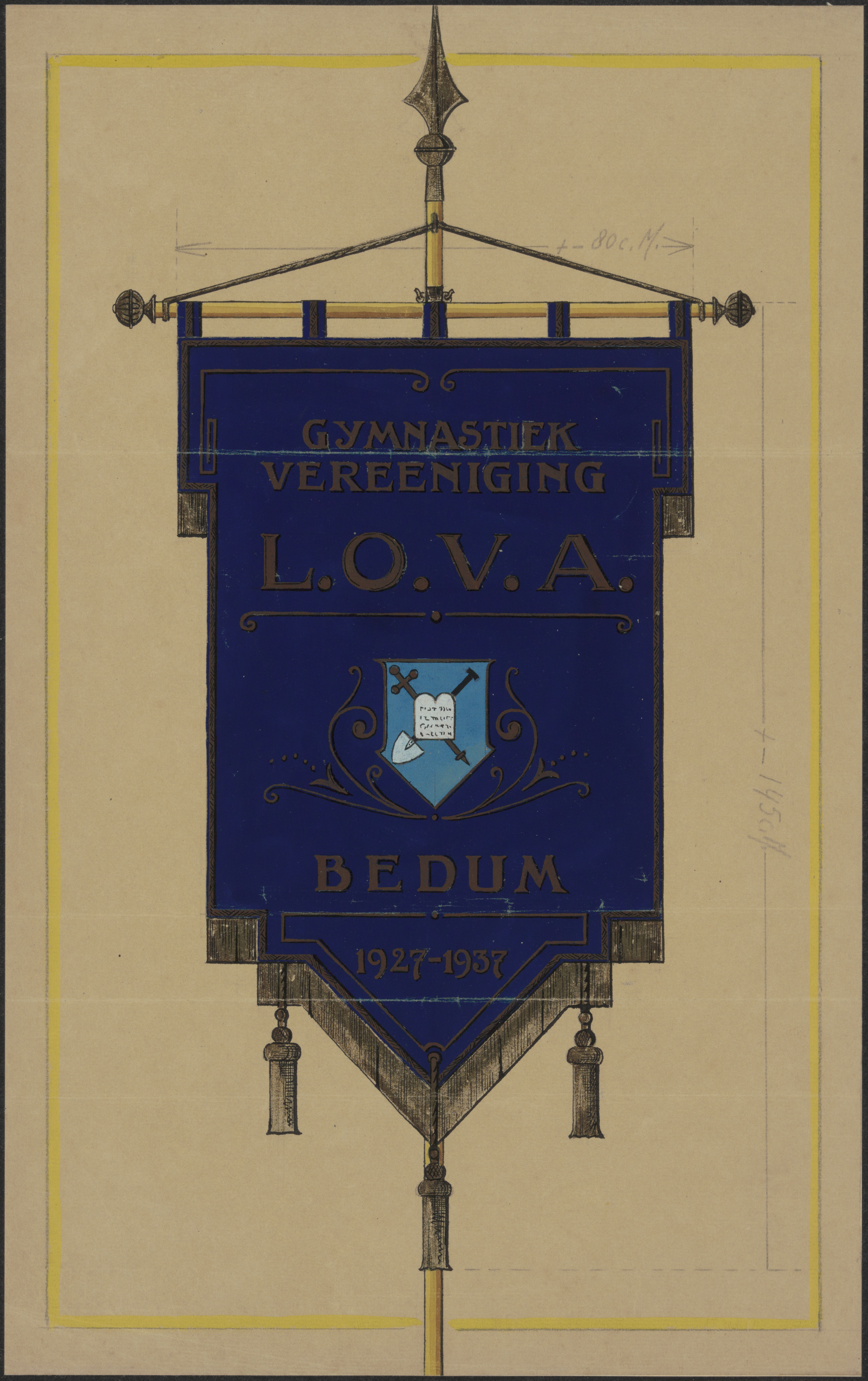 - Een vaandel van de Gymnastiekvereniging L.O.V.A. te Bedum 1927 - 1937.