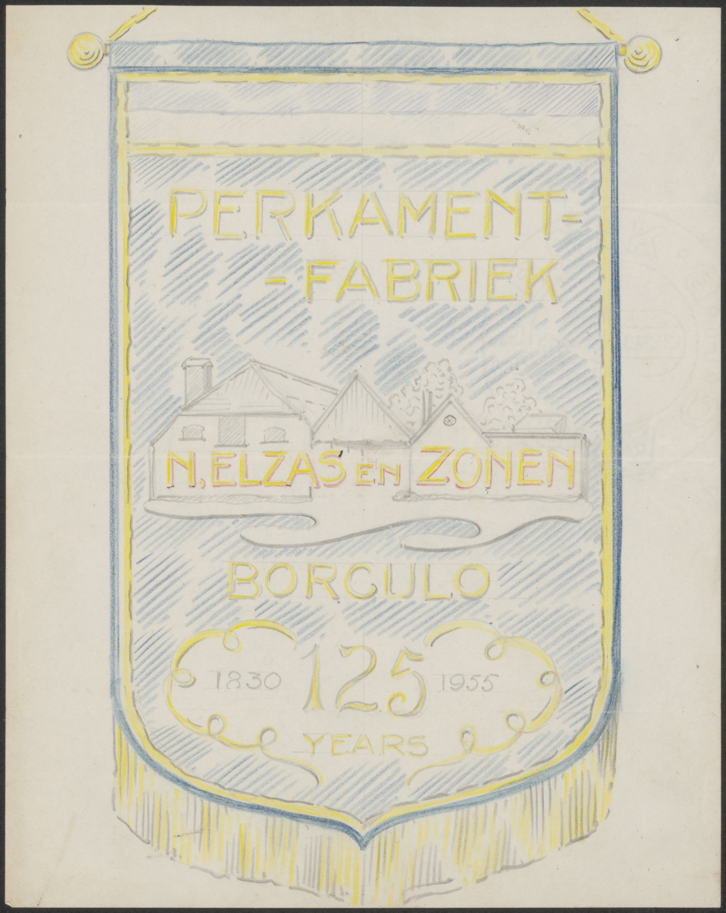 Een vaantje van de perkamentfabriek N. Elzas en Zonen te Borculo (125-jarig bestaan 1830 - 1955).