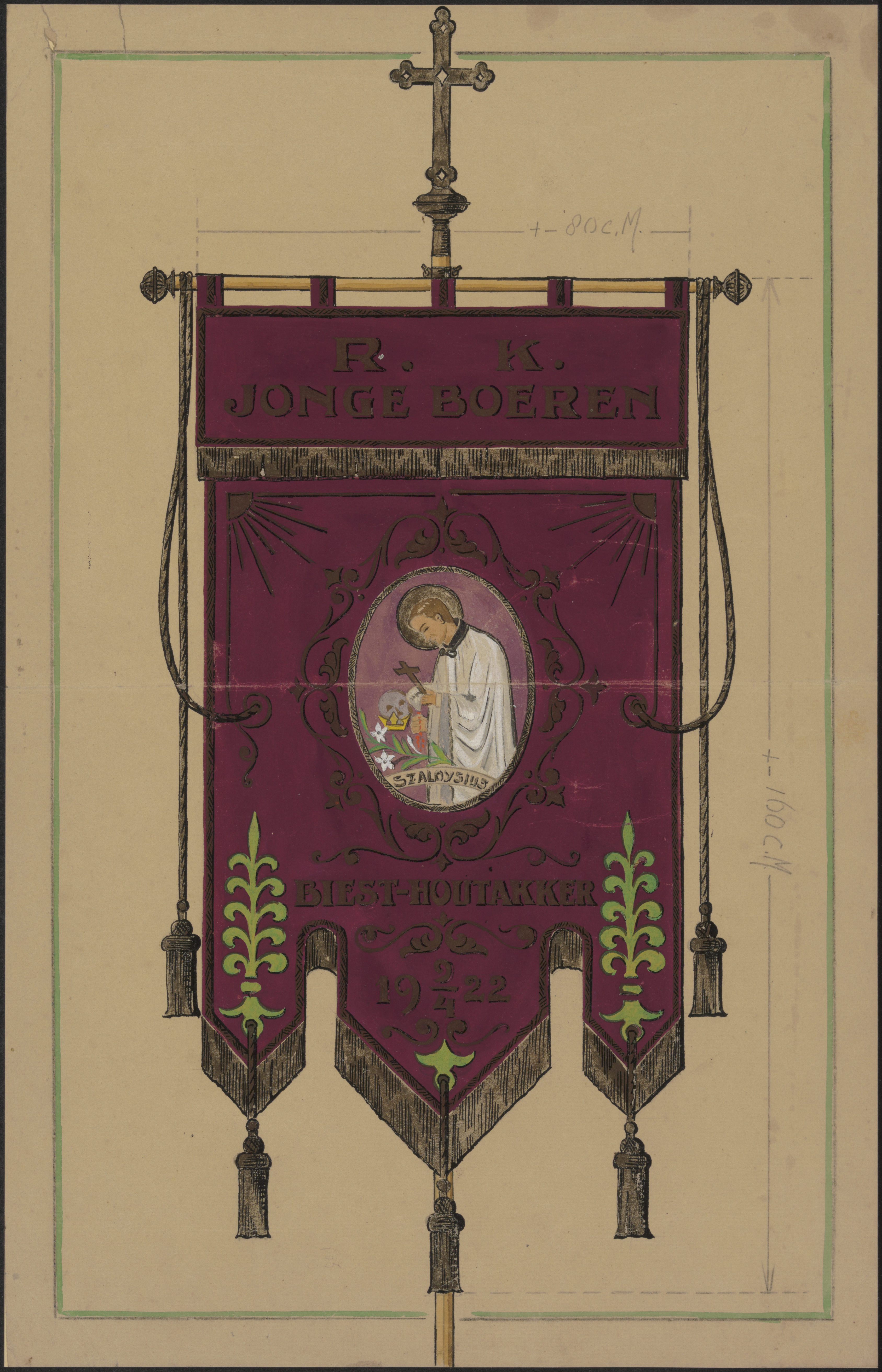Een vaandel van de R.K. 'Jonge Boeren' te Biest - Houthakker, 1922.