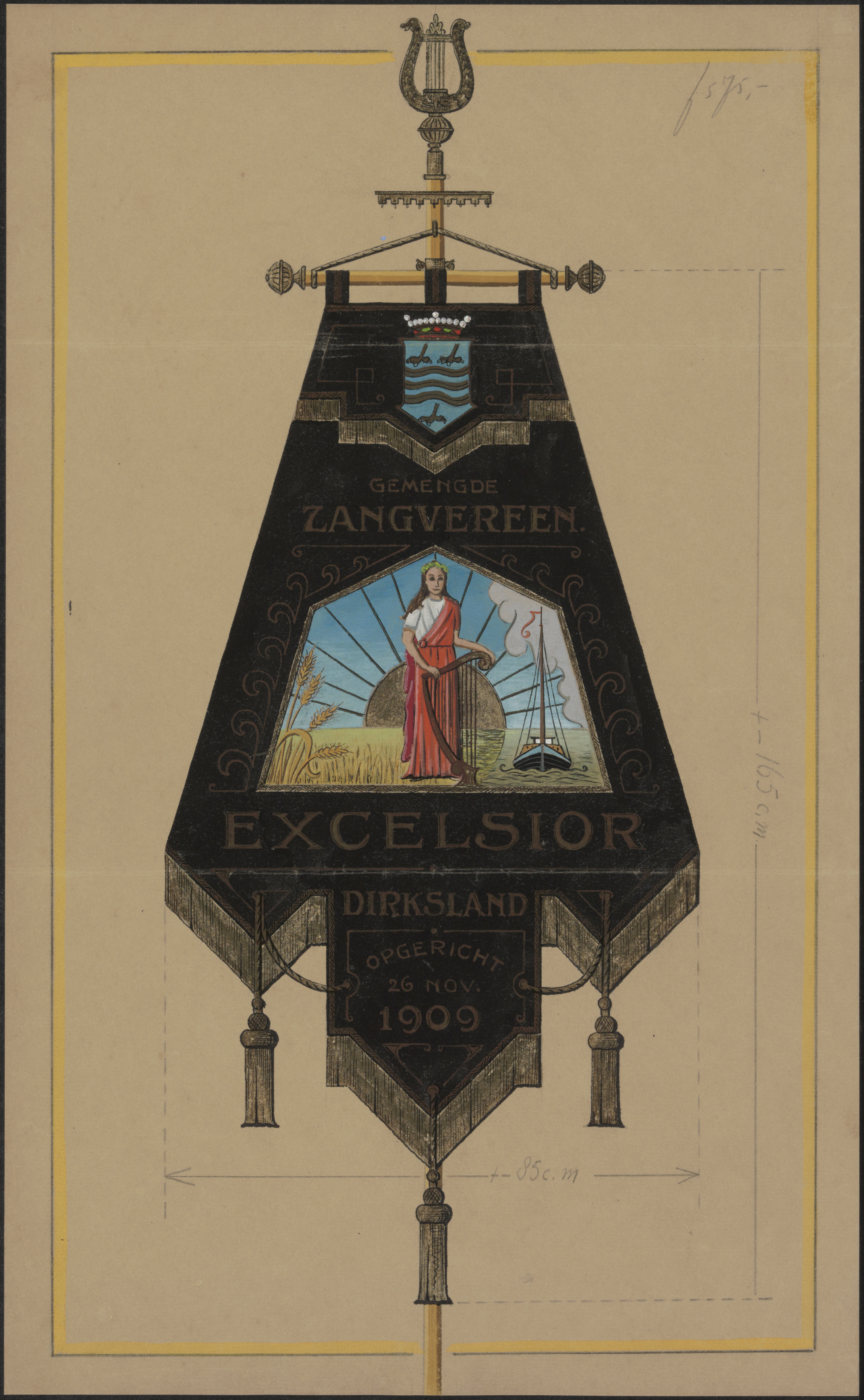 - Een vaandel van de Gemengde Zangvereeniging 'Excelsior' te Dirksland, opgericht 26 november 1909.