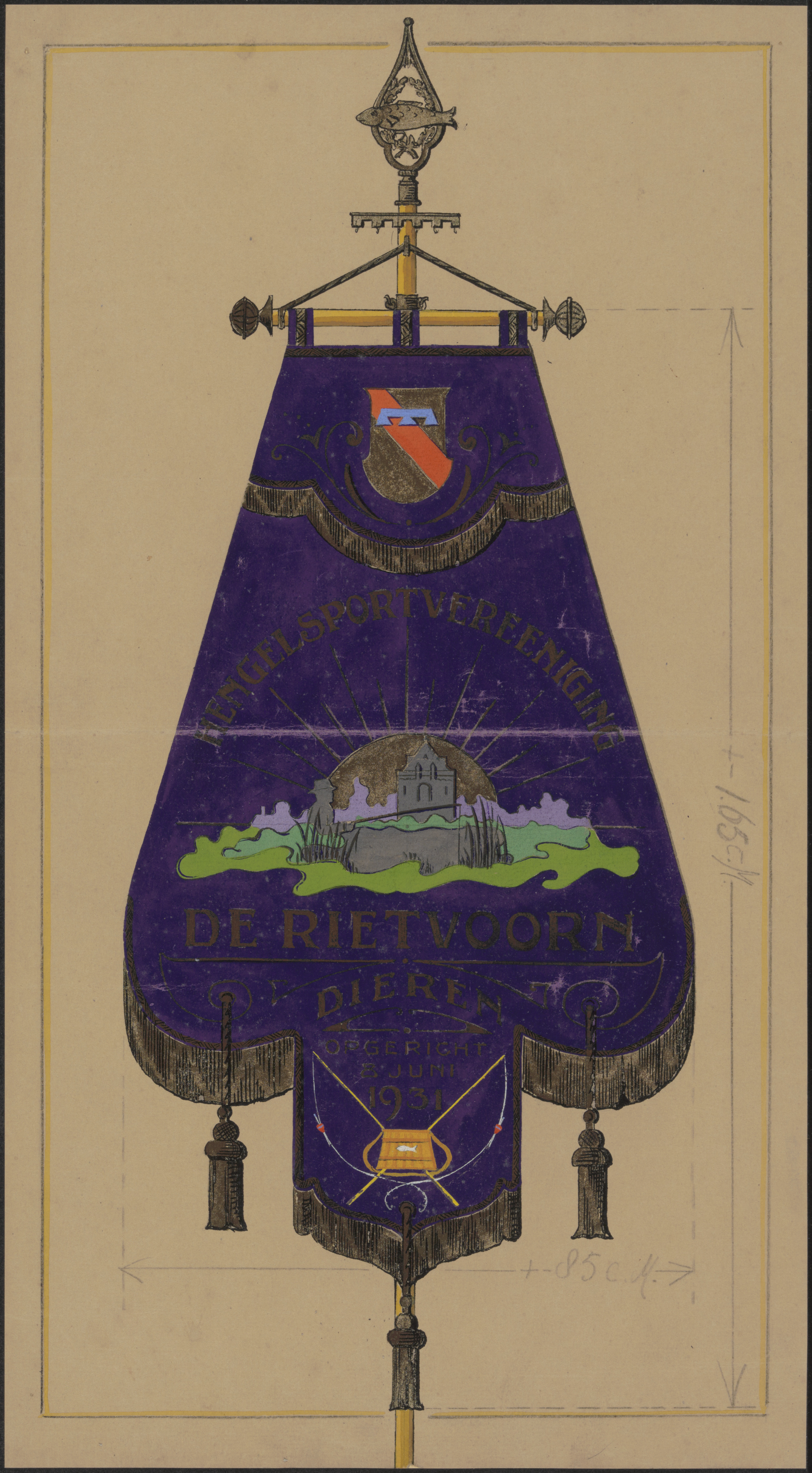 - Een vaandel van de Hengelsportvereeniging 'De Rietvoorn' te Dieren, opgericht 8 juni 1931.