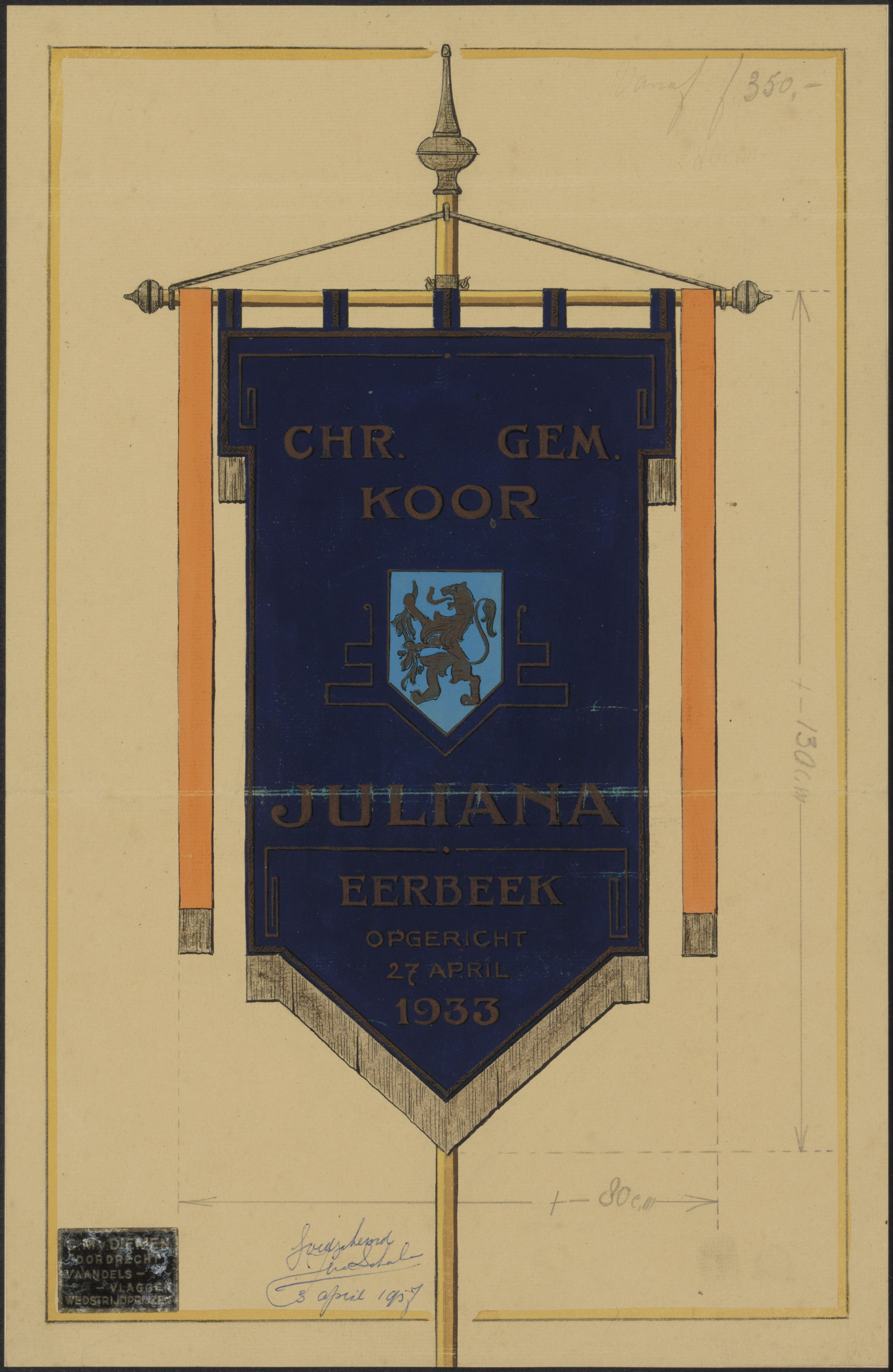 - Een vaandel van het Chr. Gemengd Koor 'Juliana' te Eerbeek, opgericht 27 april 1933.
