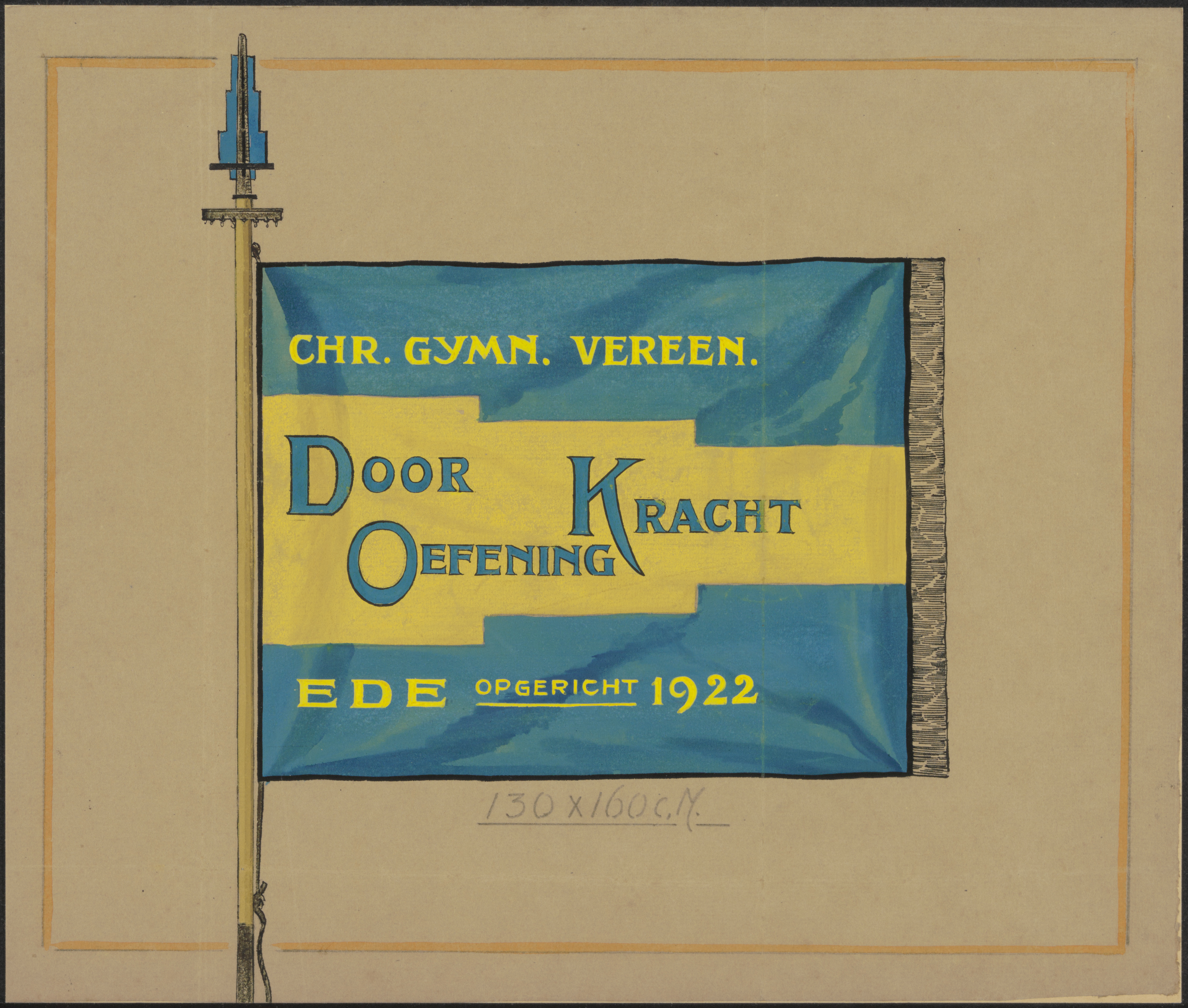 - Een vlag van de Chr. Gymnastiekvereeniging 'Door Oefening Kracht' te Ede, opgericht 1922.
