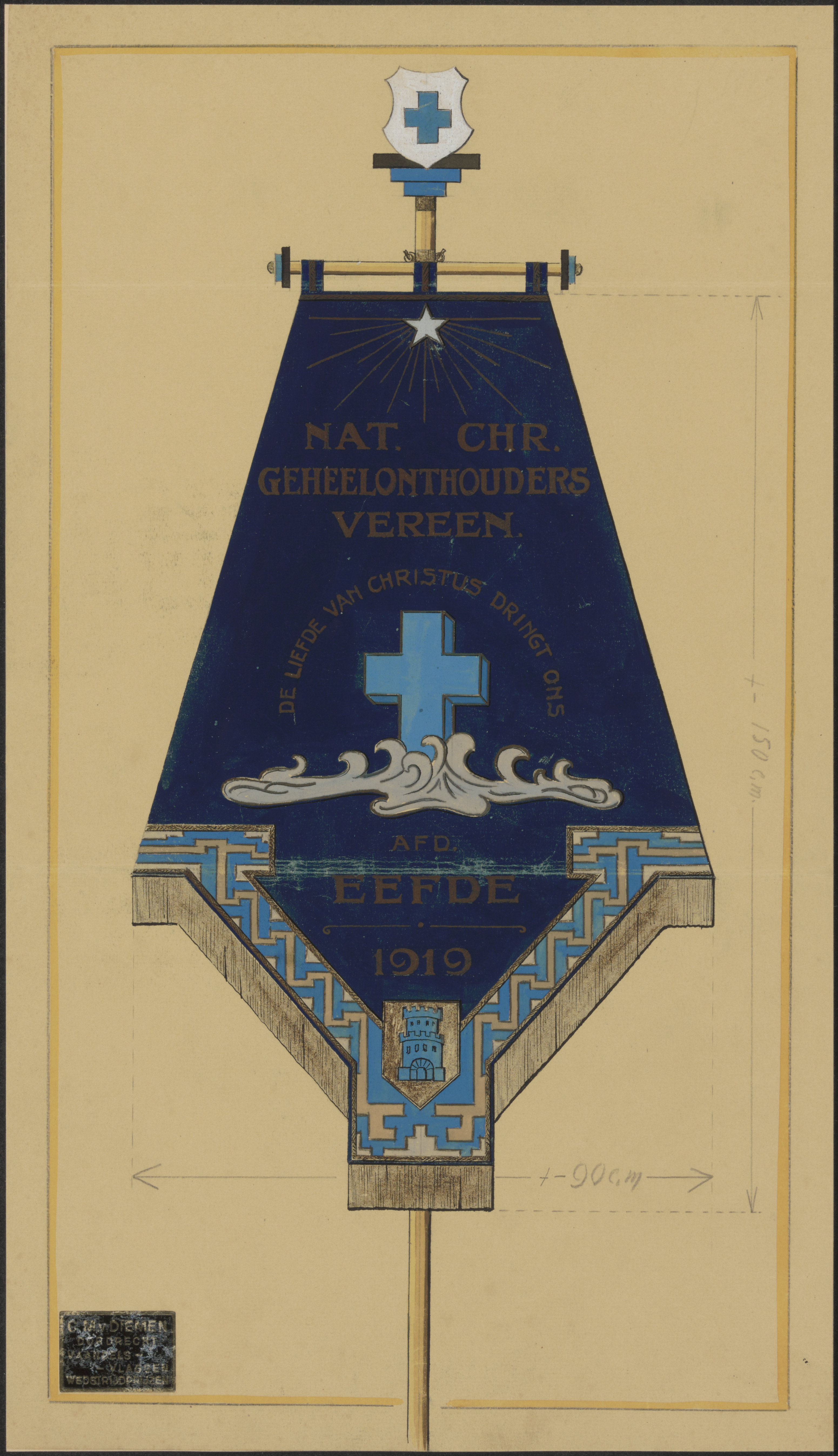- Een vaandel van de Nationale Chr. Geheelonthoudersvereniging afd. Ede, opgericht 1919.