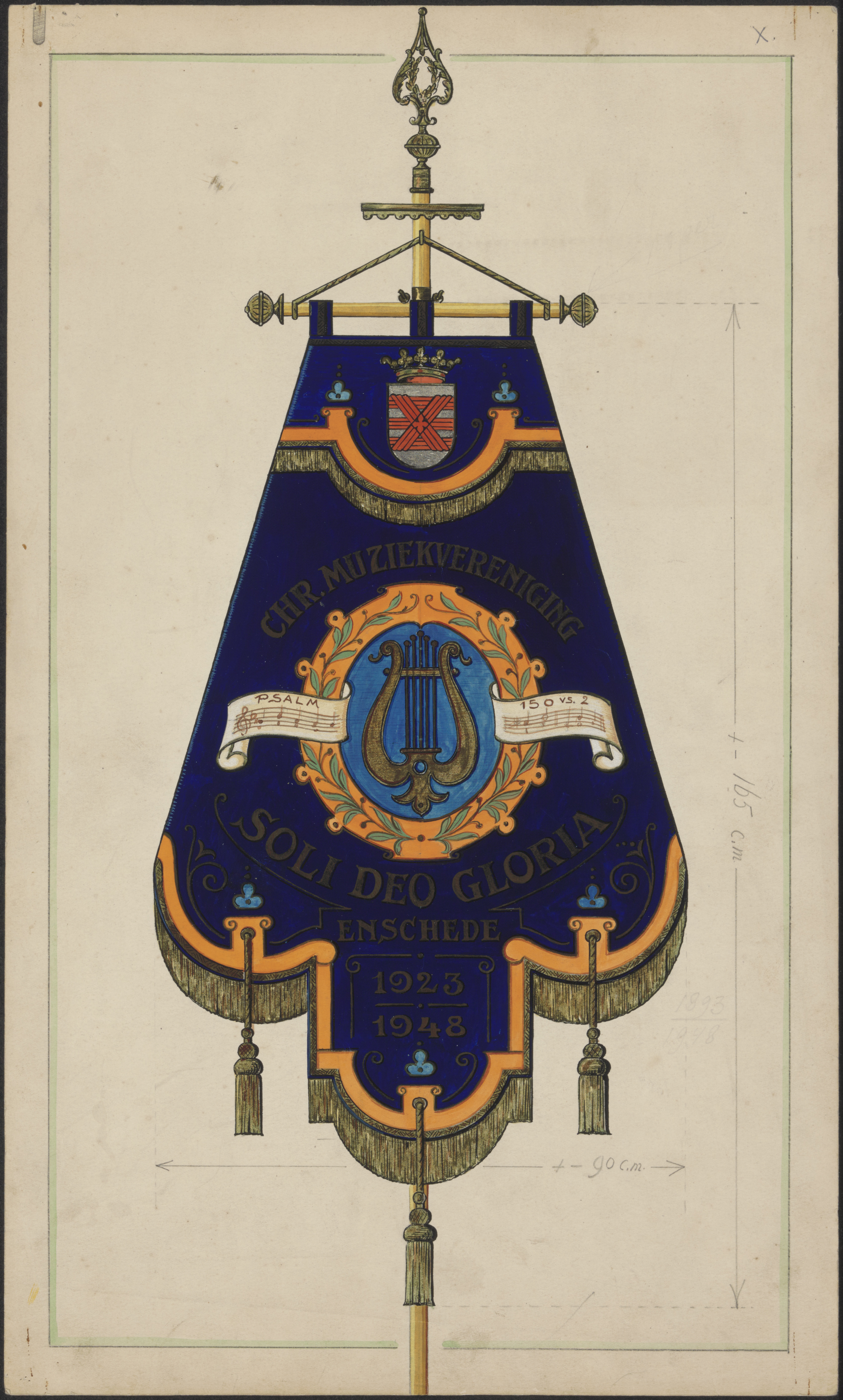 - Een vaandel van de Chr. Muziekvereniging 'Soli Deo Gloria' te Enschede, 1923 - 1948.