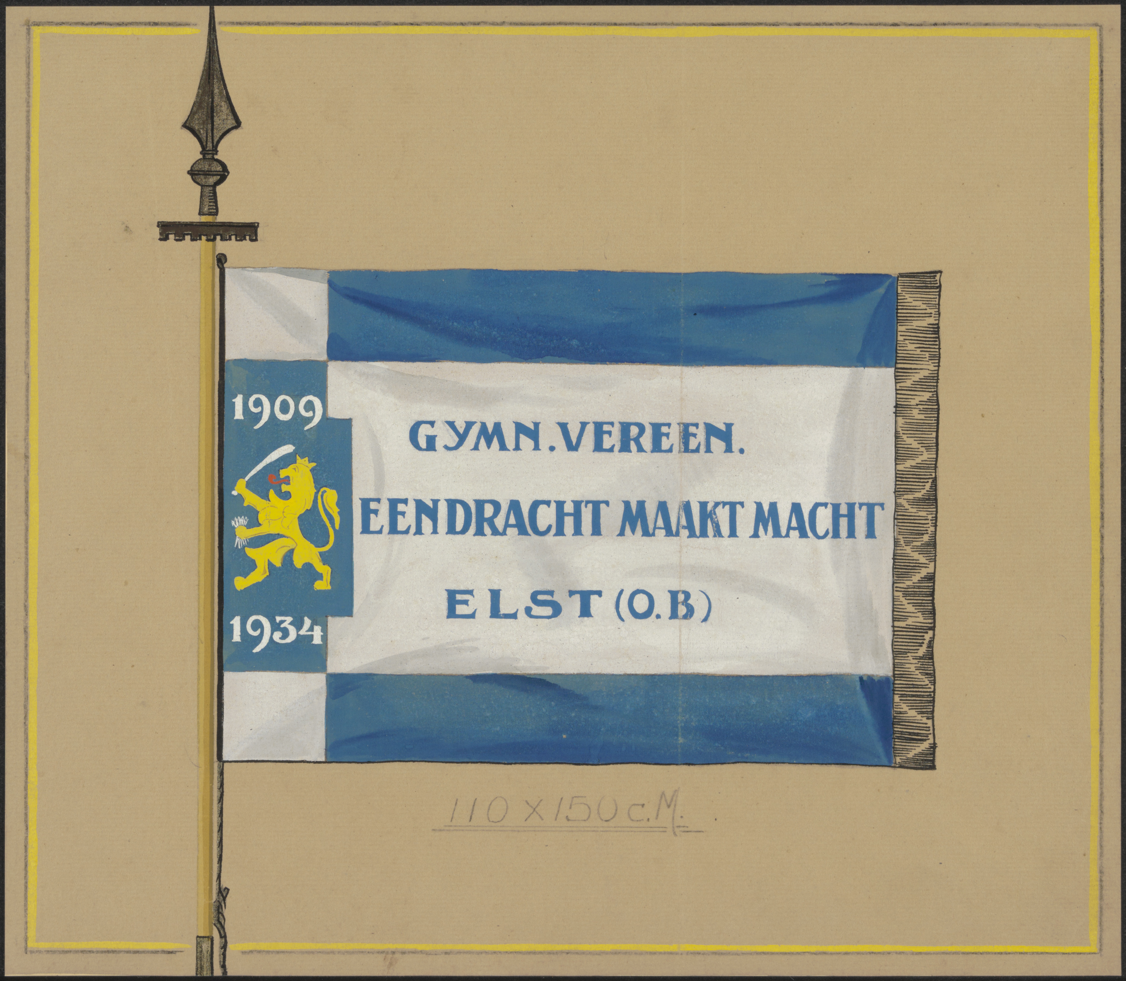 - Een vlag van de Gymnastiekvereniging 'Eendracht maakt Macht' te Elst, (1909 - 1934).