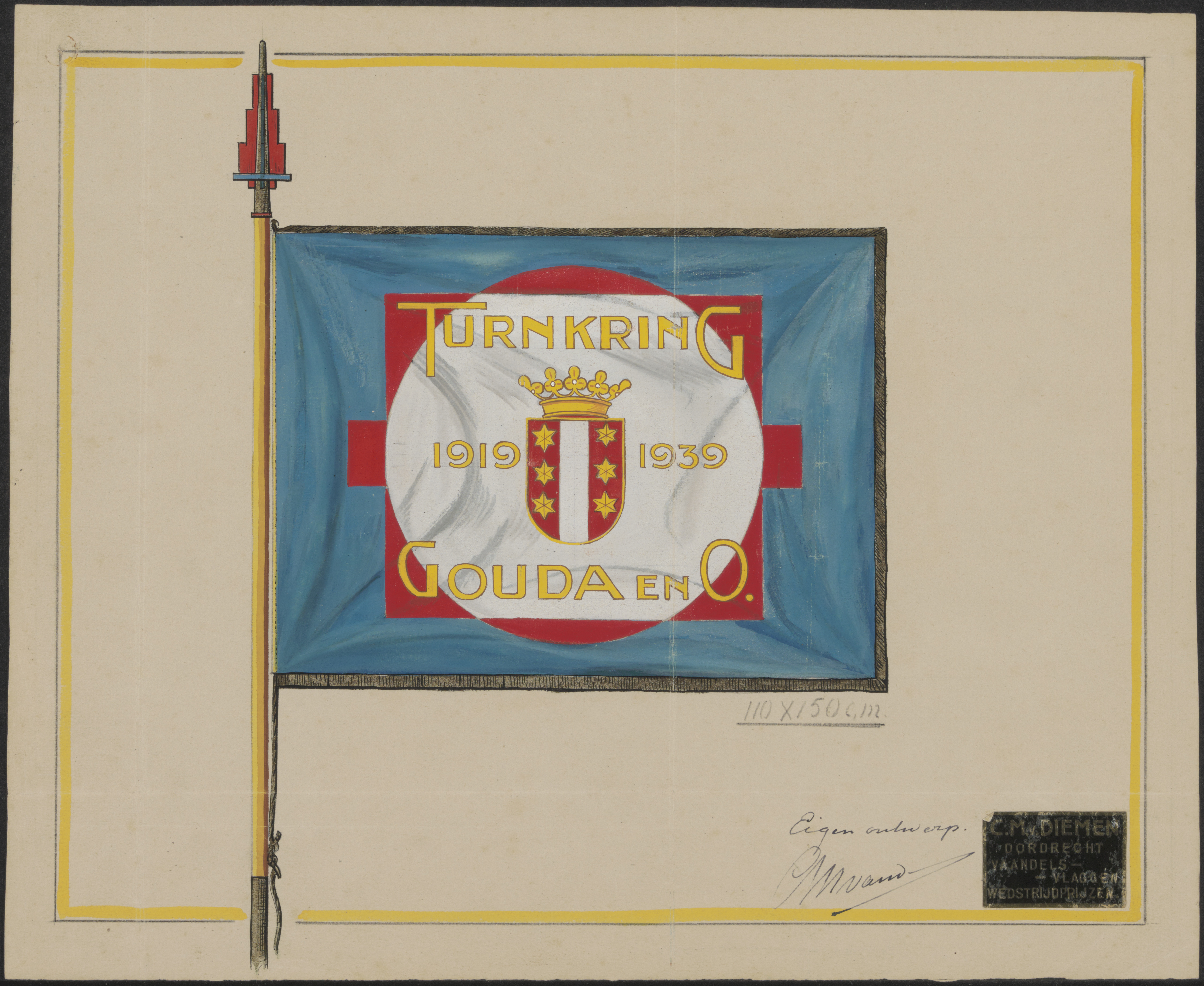 - Een vlag van de Turnkring Gouda en omstreken 1919 - 1939.