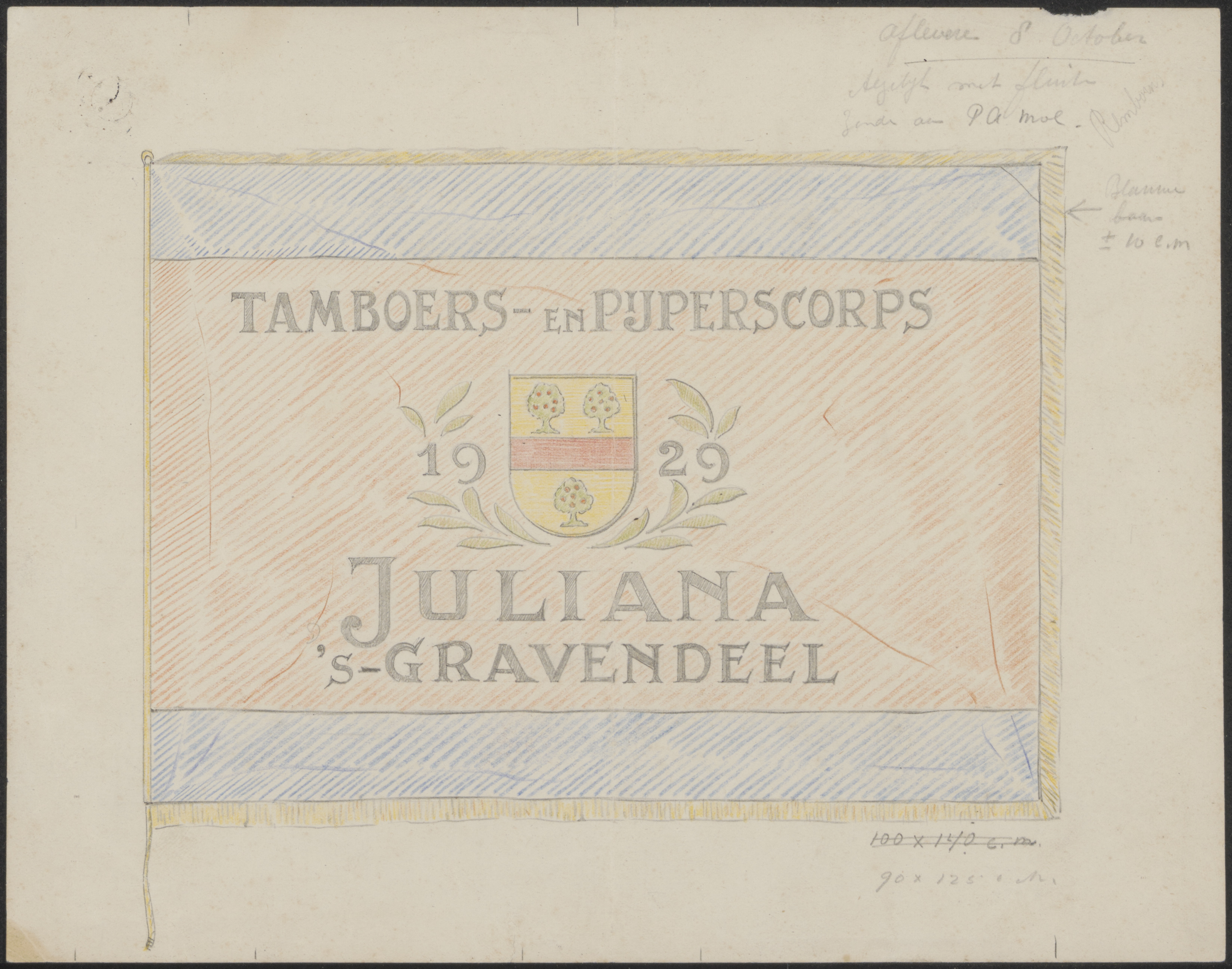 - Een vlag van het Tamboers- en Pijperkorps 'Juliana', opgericht 1929 te 's-Gravendeel.