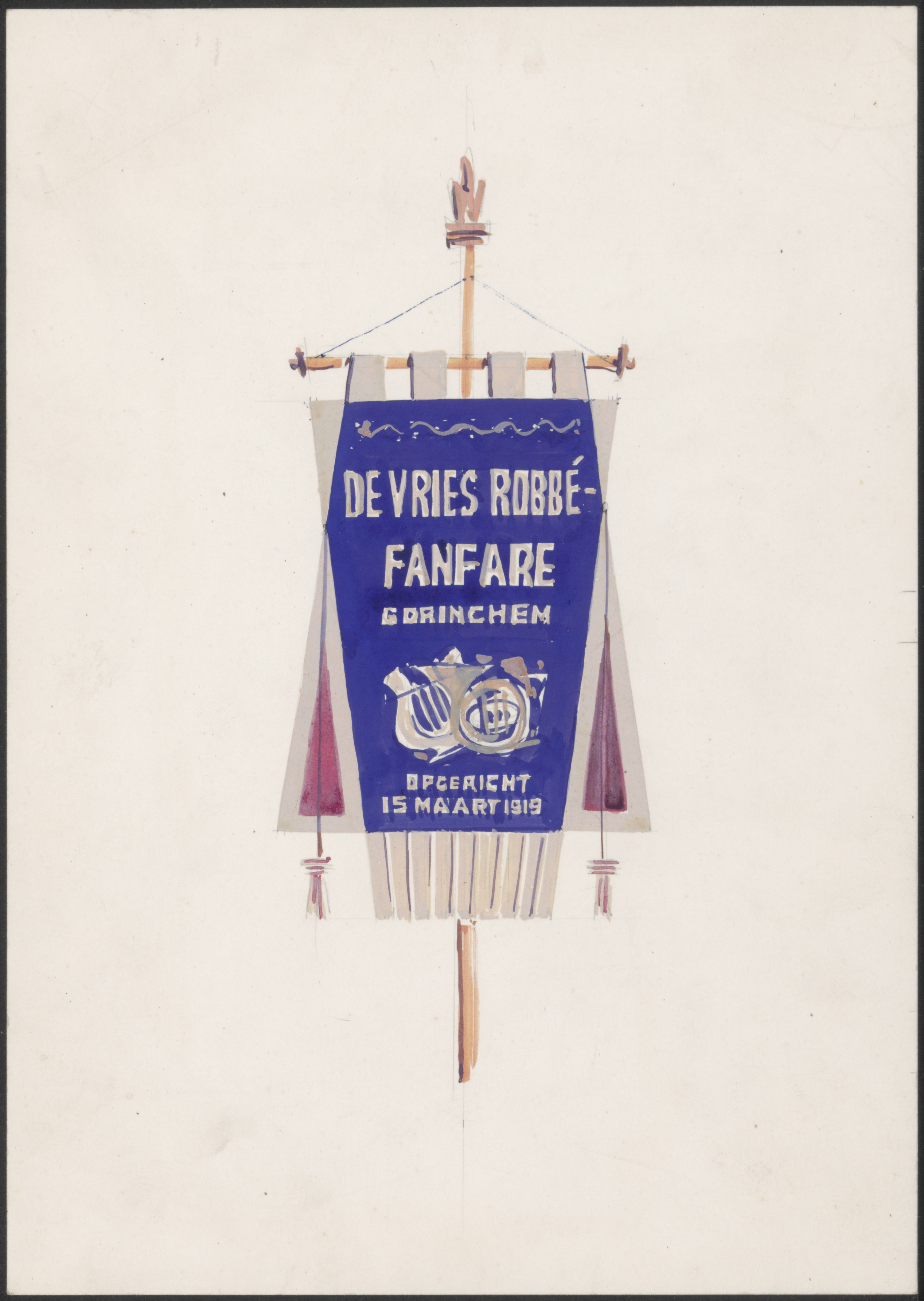 - Een vaandel van de Fanfare 'De Vries en Robbè', opgericht 15 maart 1919 te Gorinchem