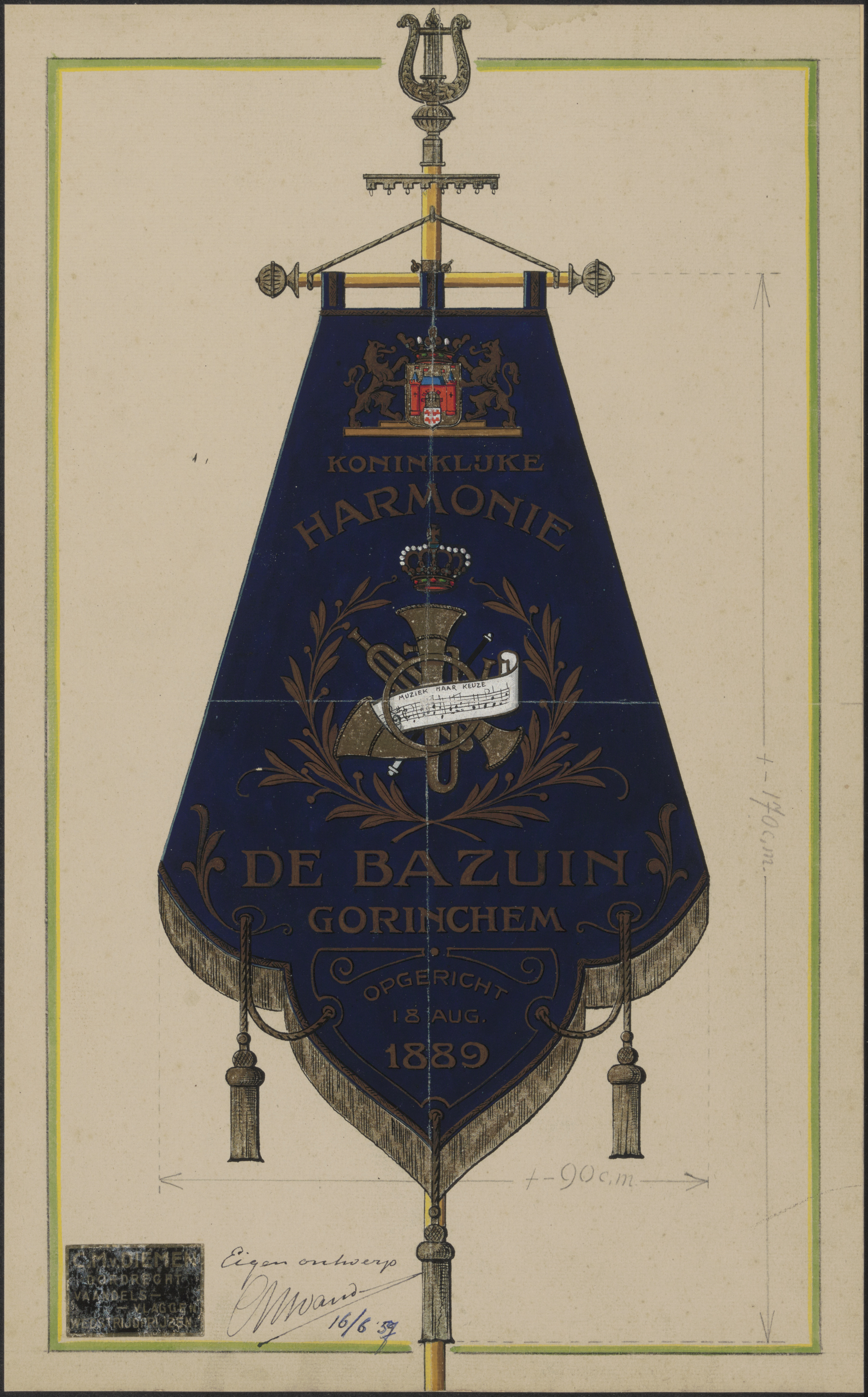 - Een vaandel van de Koninklijke Harmonie 'De Bazuin', opgericht 18 augustus 1889 te Gorinchem.