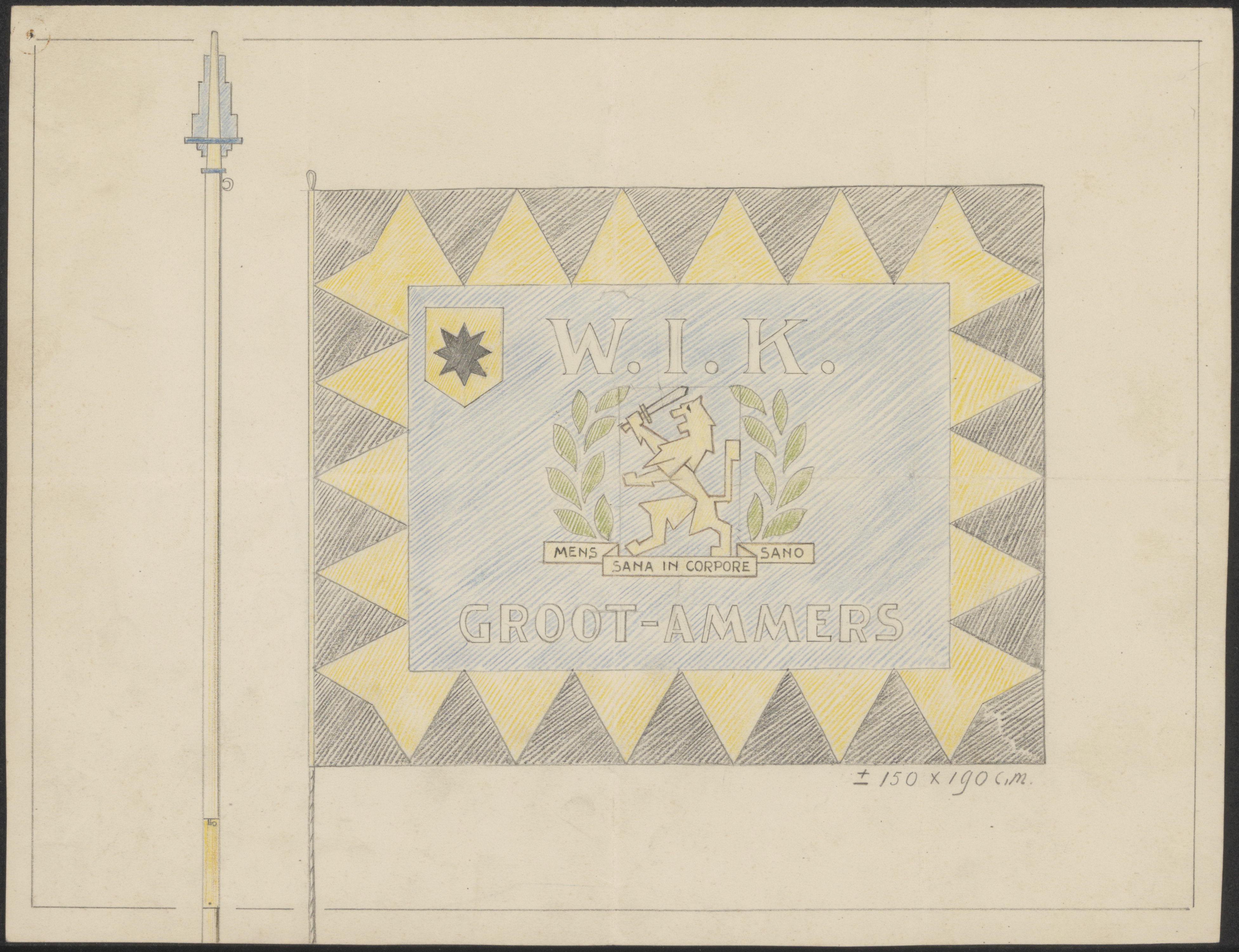 - Een vlag van W.I.K. (Mens Sana in Corpore-sano) te Groot-Ammers.