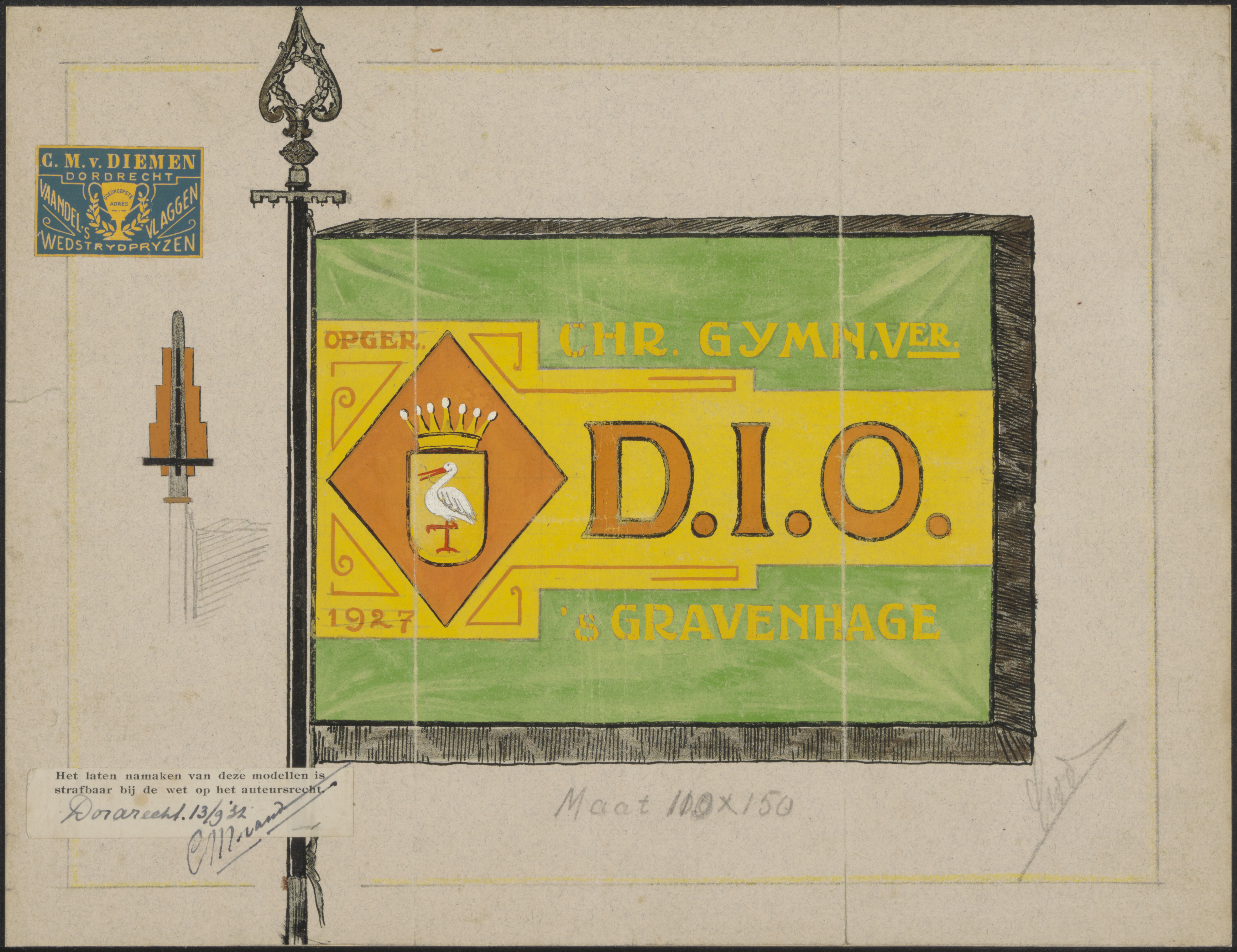 - Een vlag van de Chr. Gymnastiekvereniging D.I.O., opgericht 1927 te 's-Gravenhage.