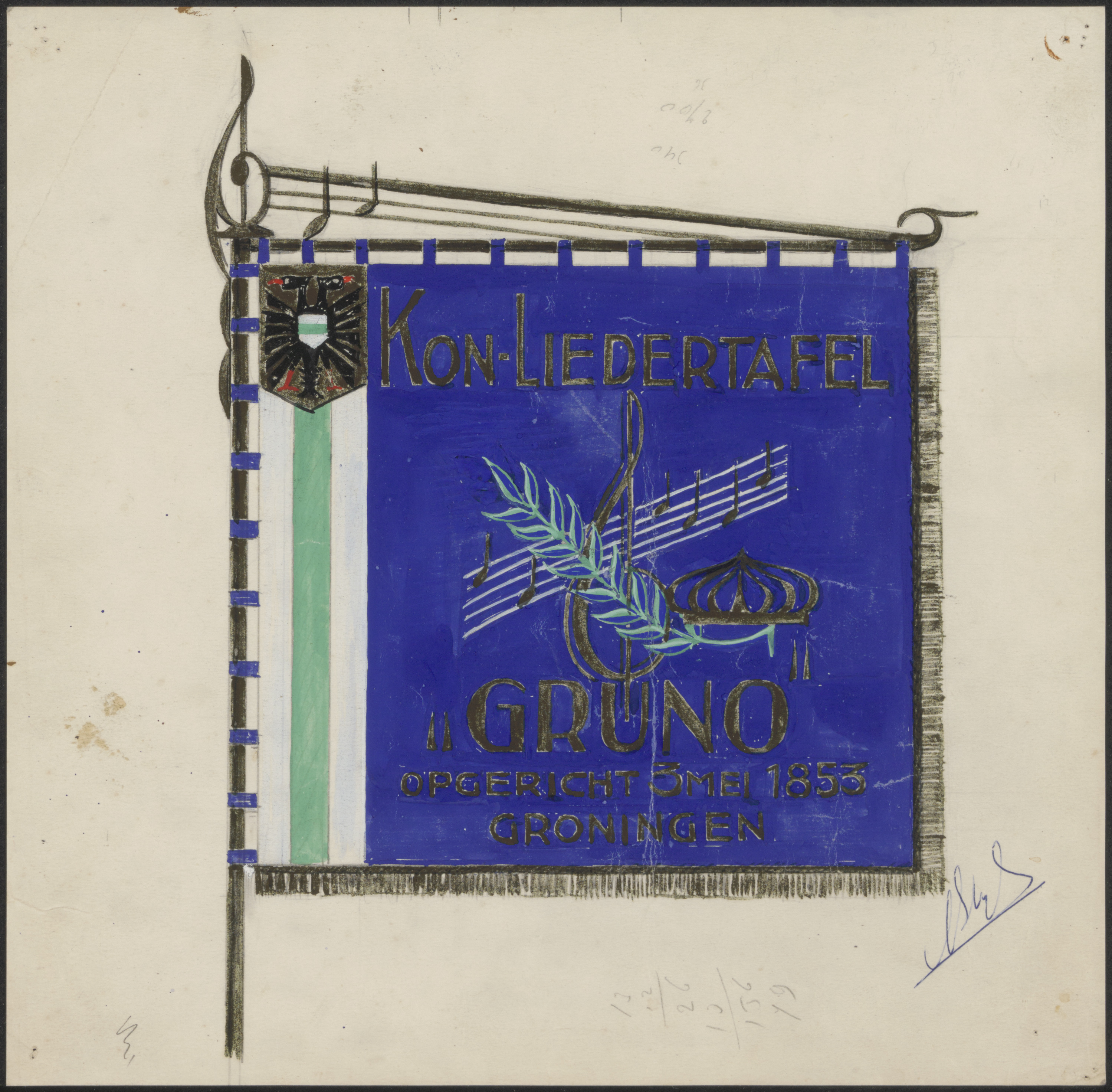- Een vlag van de Koninklijke Liedertafel 'Gruno', opgericht 3 mei 1853 te Groningen.