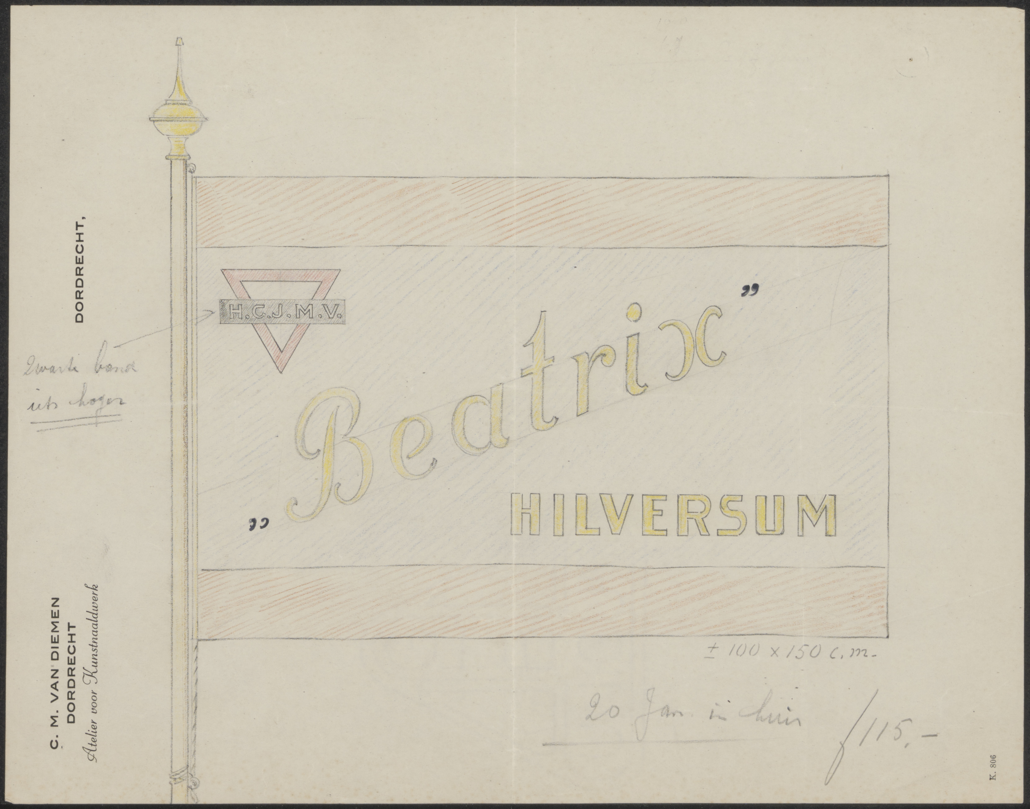 Een vlag van de Hilversumsche H.C.J.M.V. - 'Beatrix'.