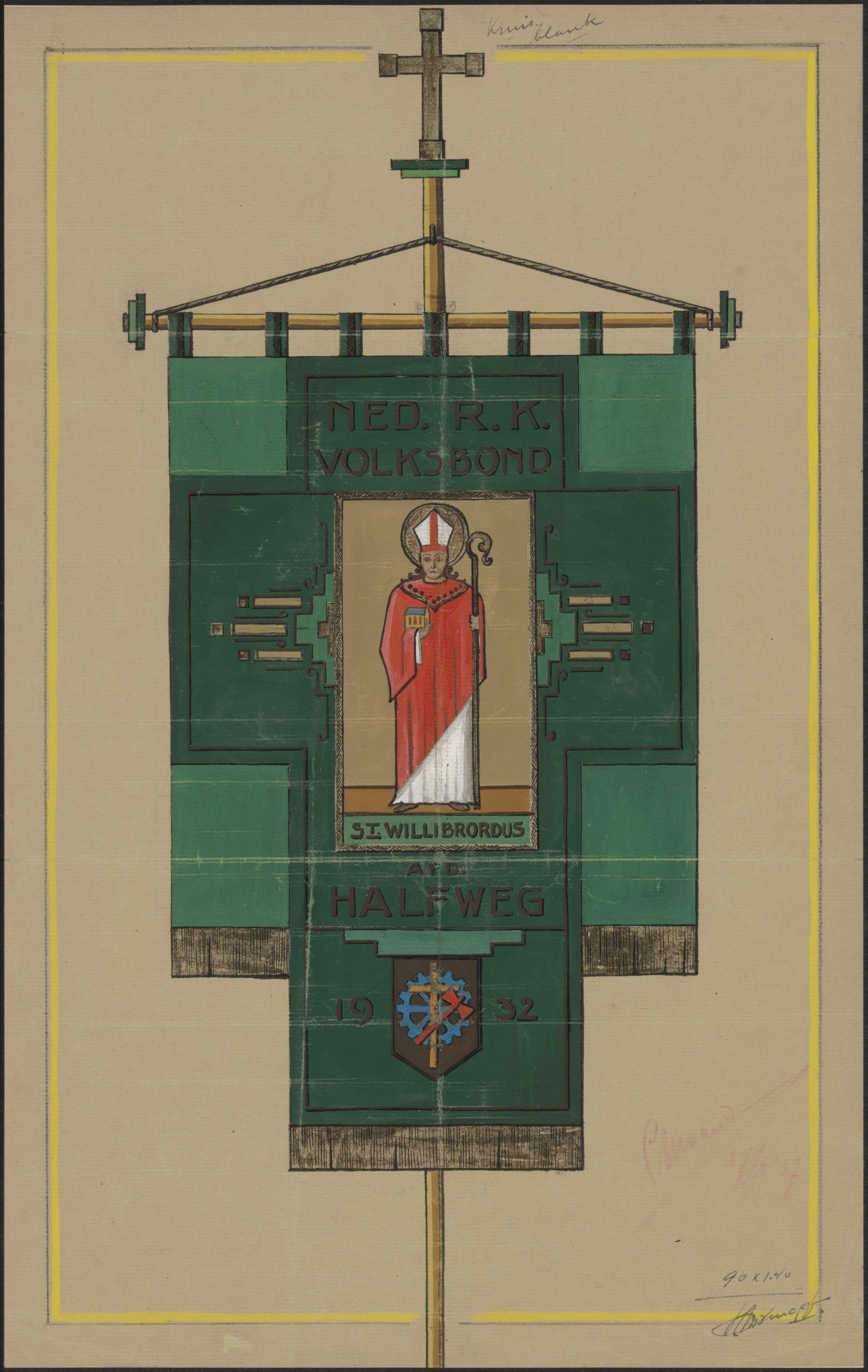 - Een vaandel van de Ned. R.K. Volksbond St. Willibrordus, afd. Halfweg 1932.