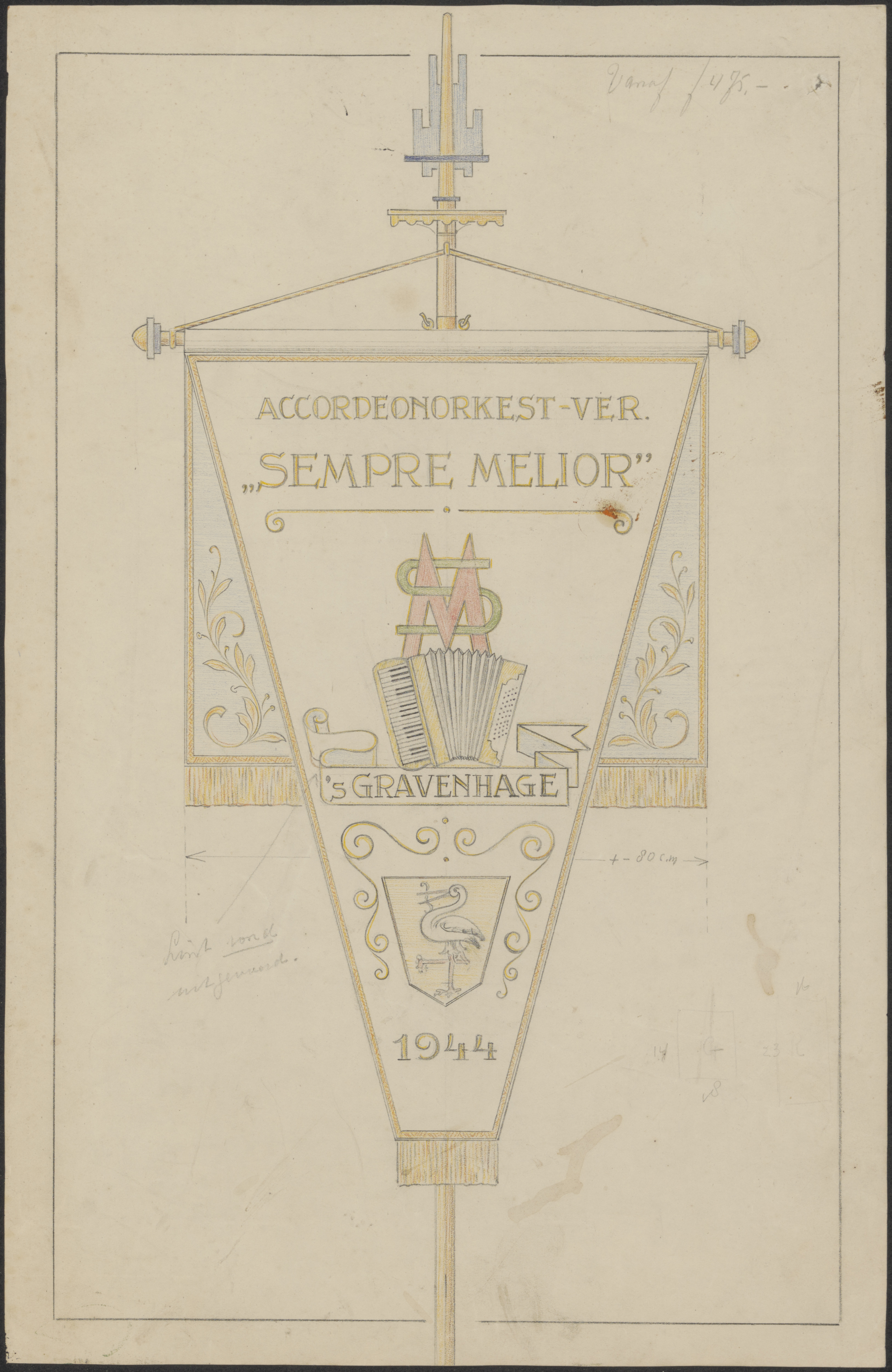- Een vaandel van Accordeon Orkest - Vereniging 'Sempre - Melior' te 's-Gravenhage (1944).