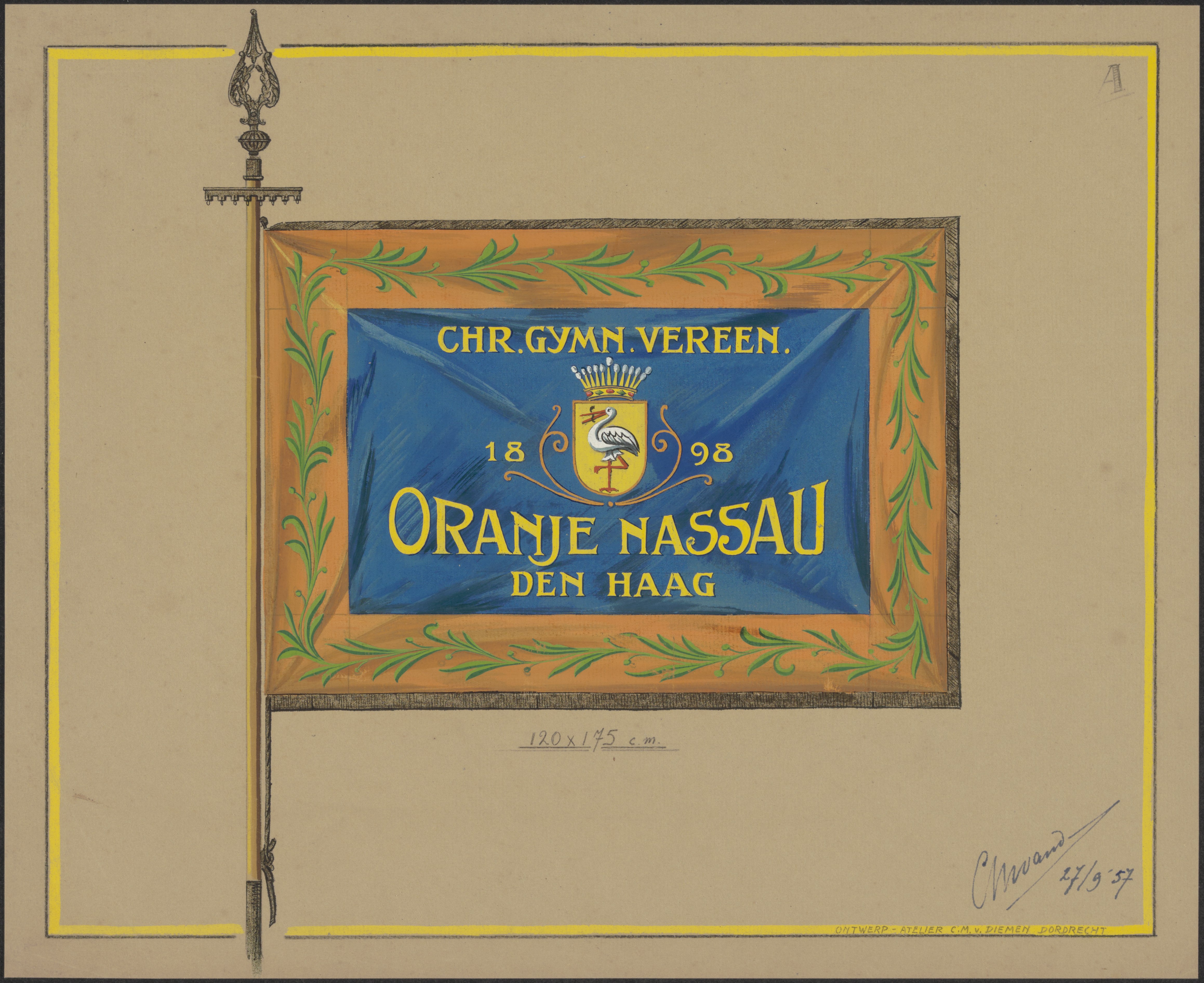 - Een vlag van de Chr. Gymnastiek Vereeniging 'Oranje-Nassau' uit Den Haag, 1898.