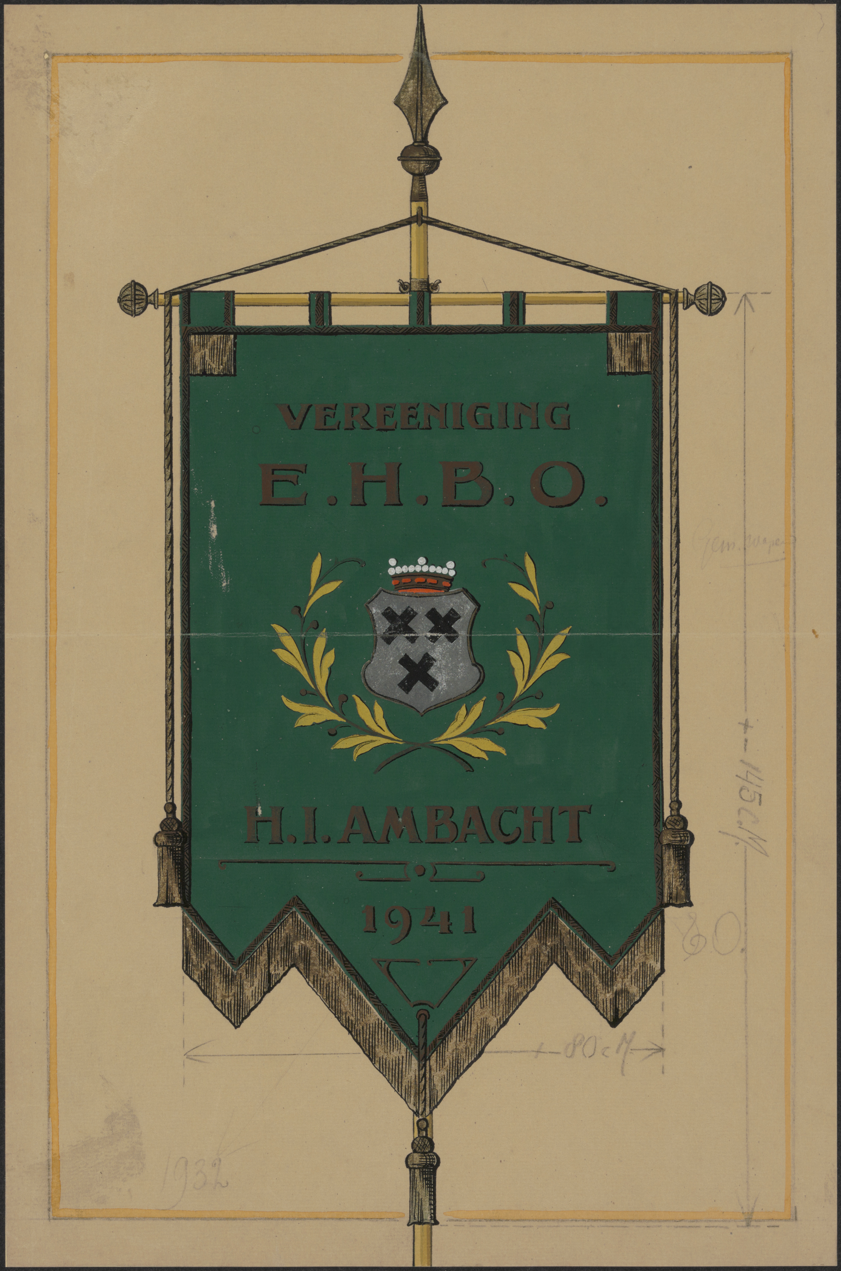 - Een vaandel van de Vereniging E.H.B.O. te H.I. Ambacht (1941), 1932 opgericht.