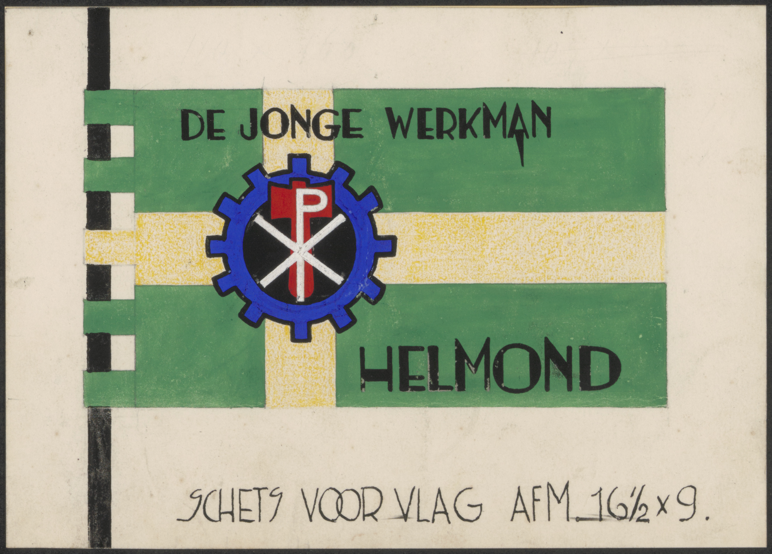 Een vlag van de 'Jonge Werkman' te Helmond.