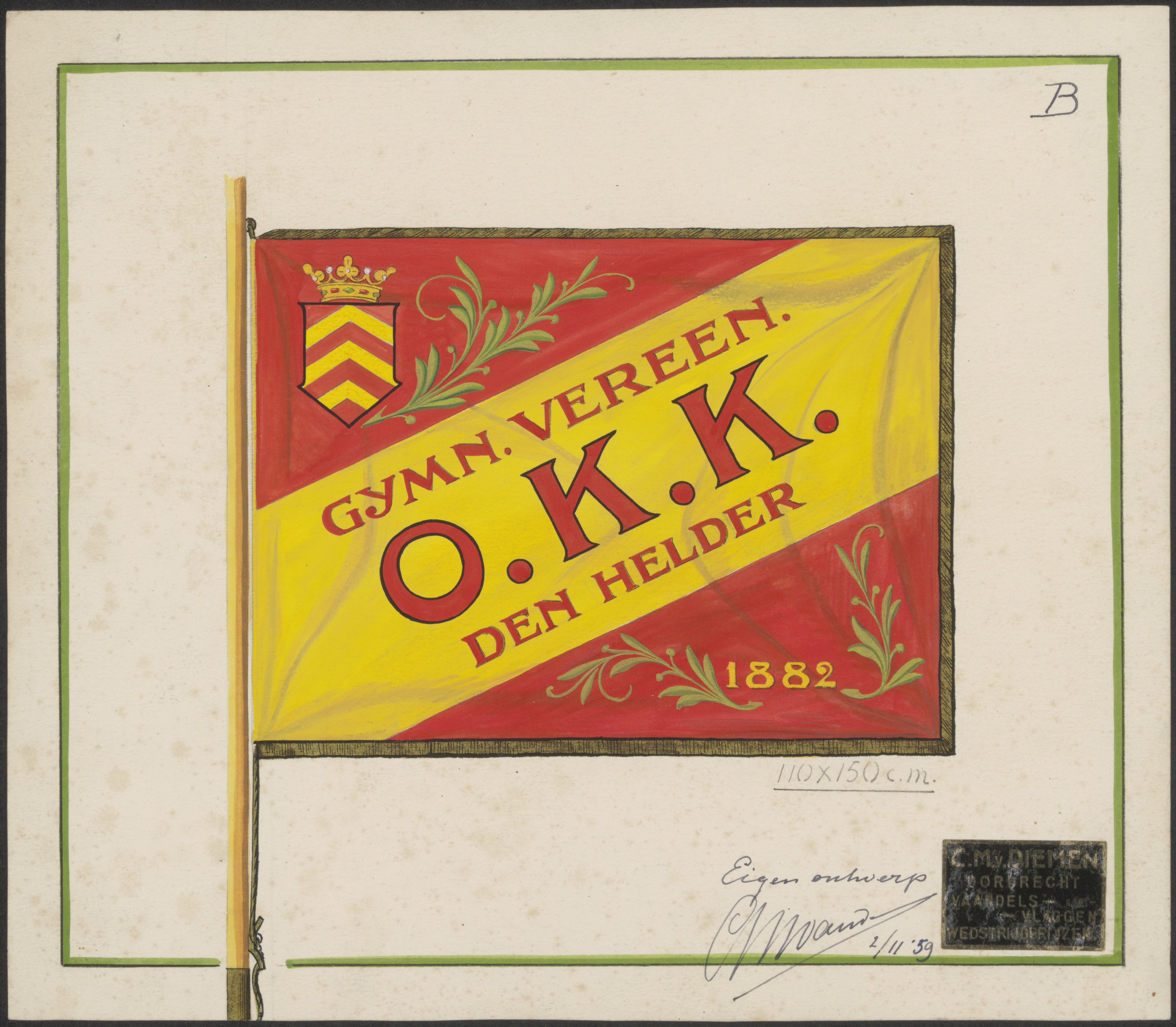 Een vlag van de Gymnastiekvereeniging O.K.K. Den Helder.