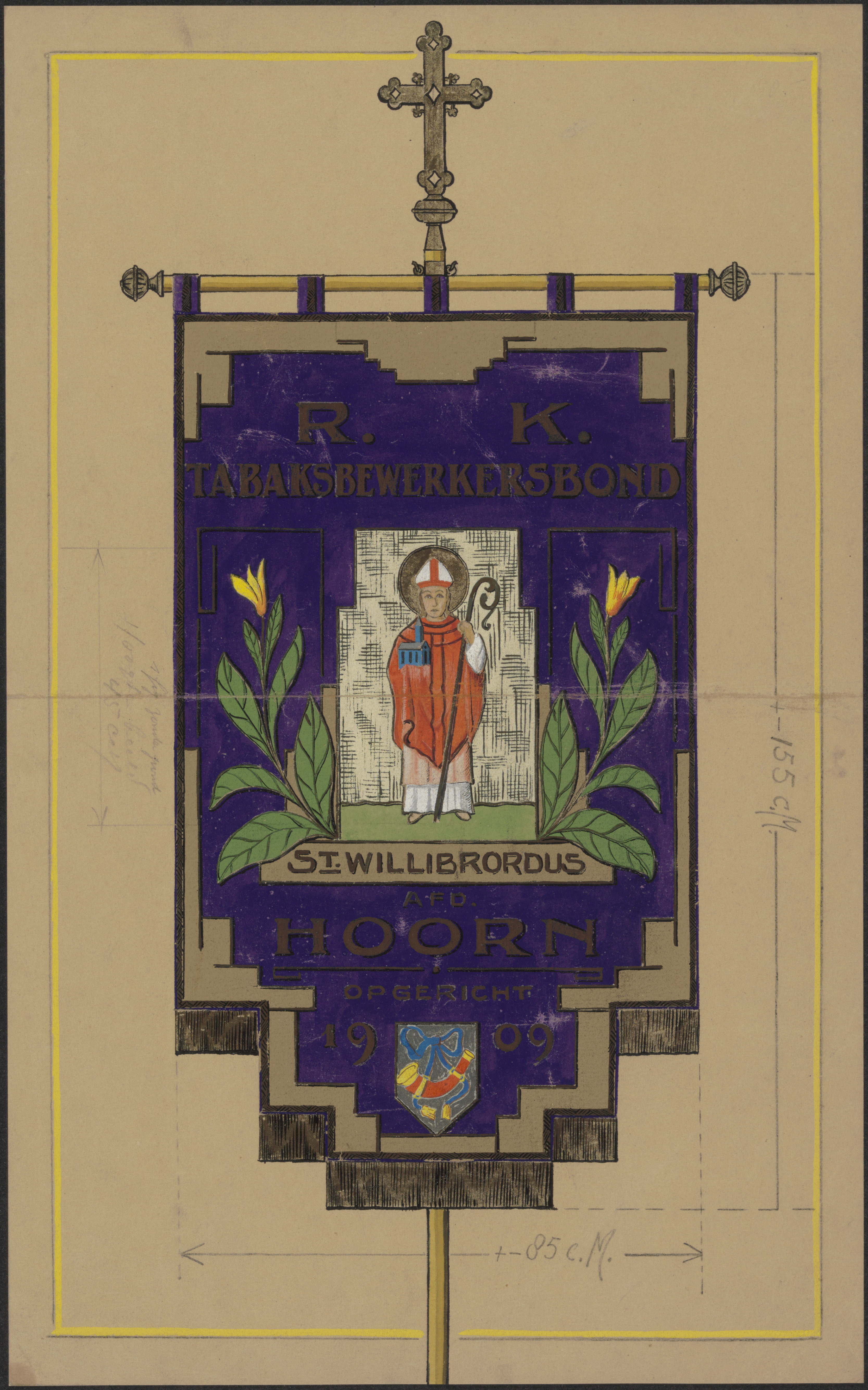 Een vaandel van de R.K. Tabaksbewerkersbond 'St.Willibrordus' afd. Hoorn; opgericht 1909.