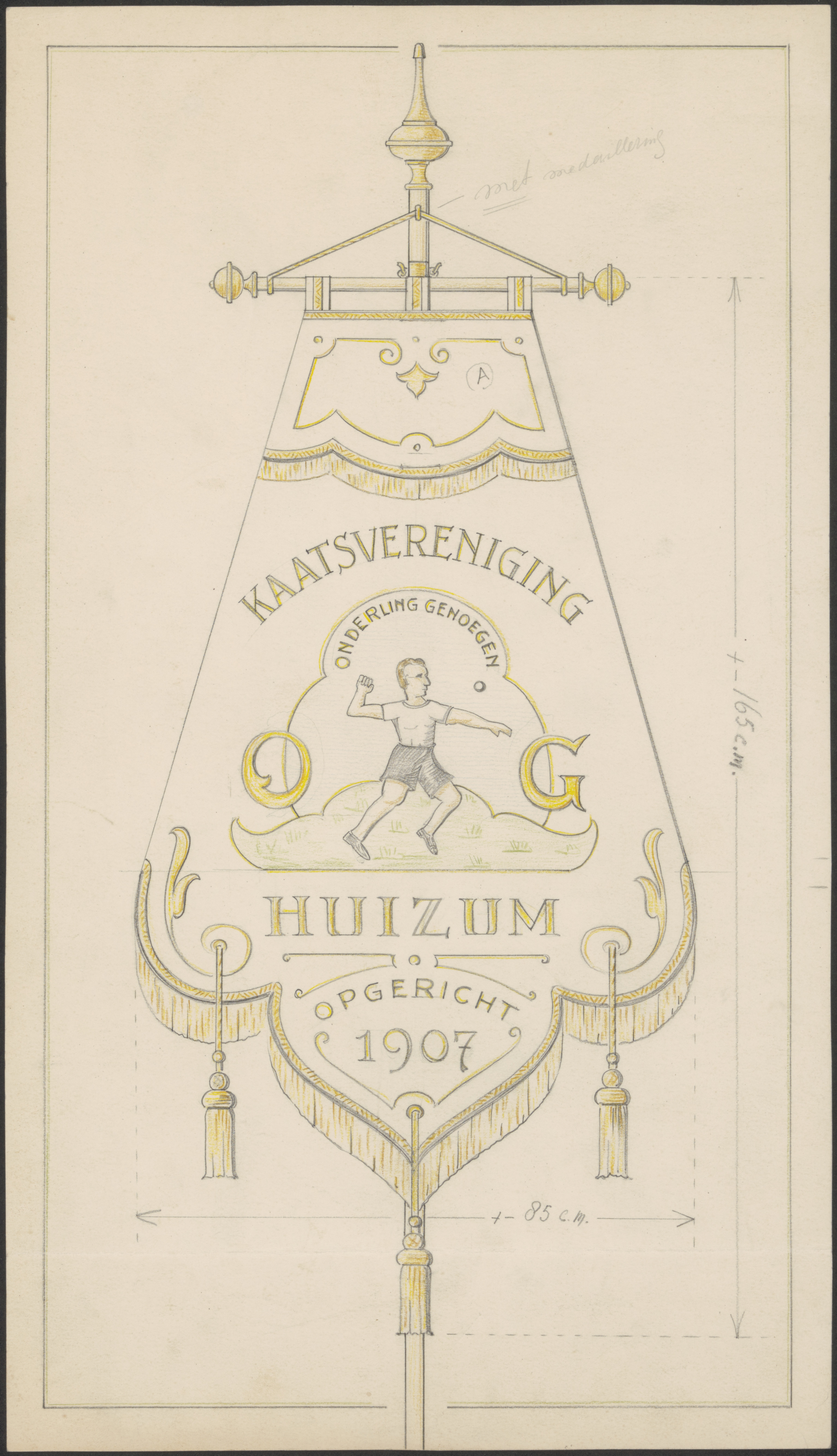 - Een vaandel van de Kaatsvereniging 'Onderling Genoegen' te Huizum, opgericht 1907.