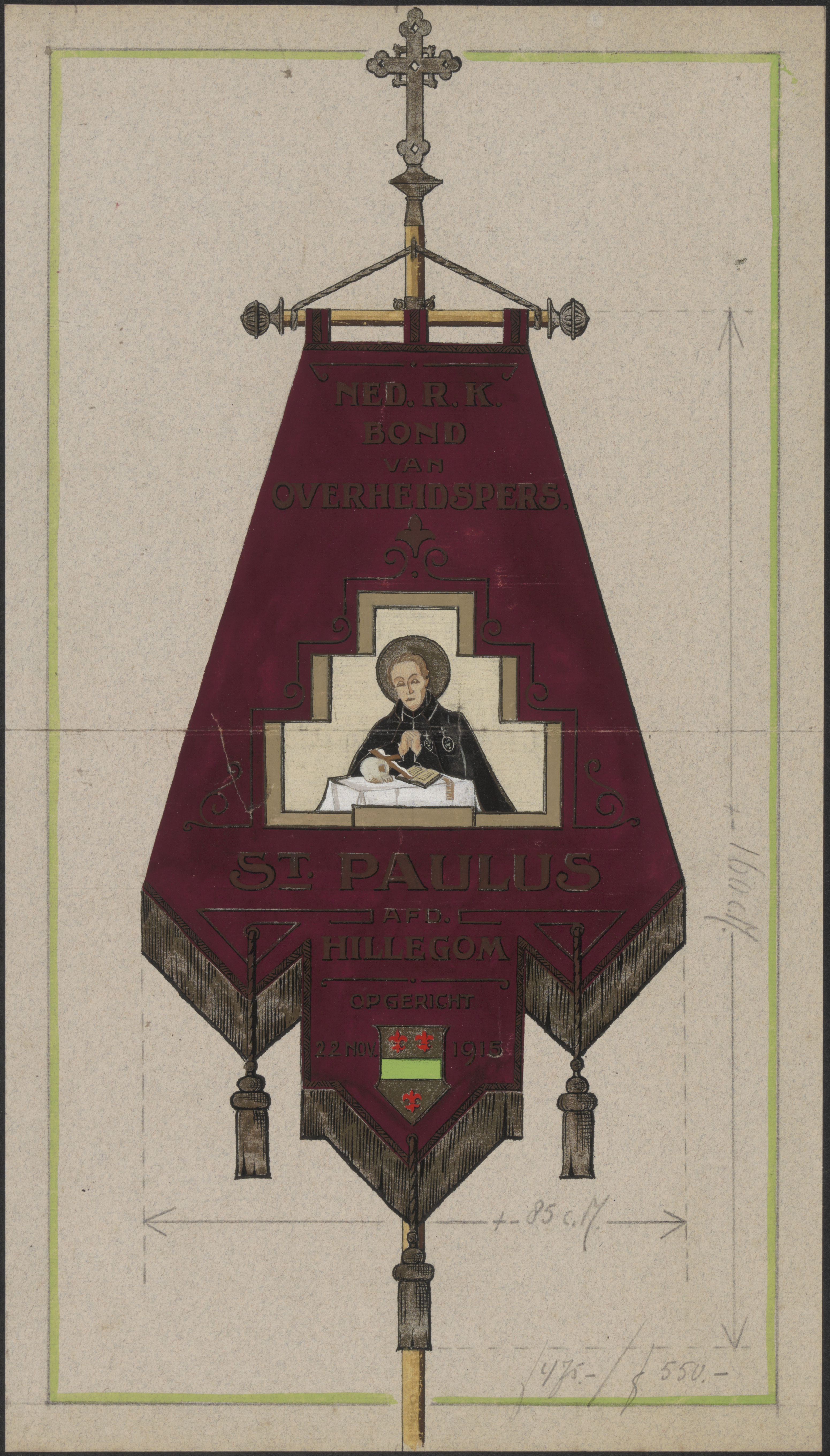 - Een vaandel van de Nederlandse R.K. Bond van Overheidspersoneel 'St. Paulus' afd. Hillegom; opgericht 22 november 1915.