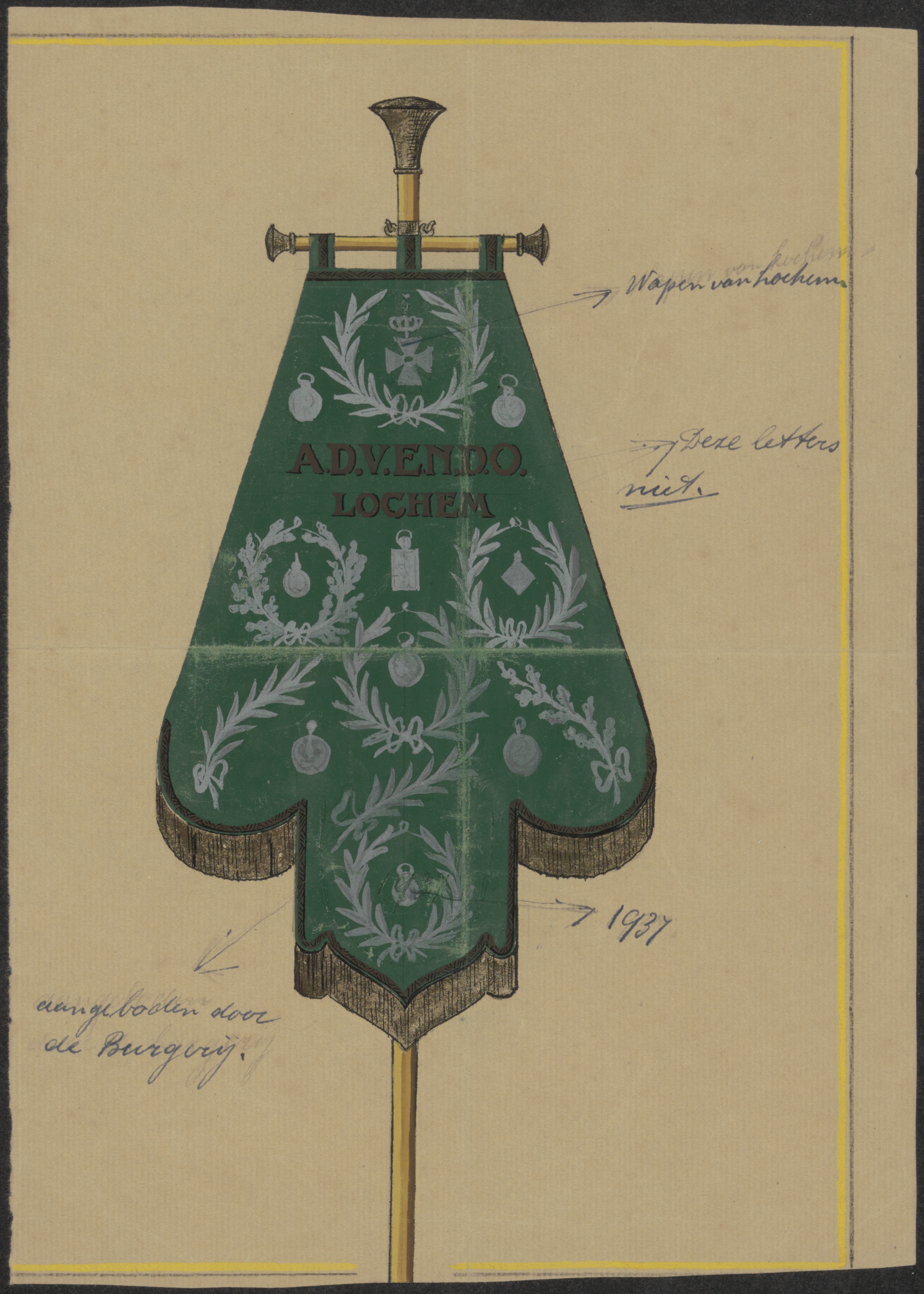 - Een vaandel van Advendo te Lochem; aangeboden door de burgerij, 1937.
