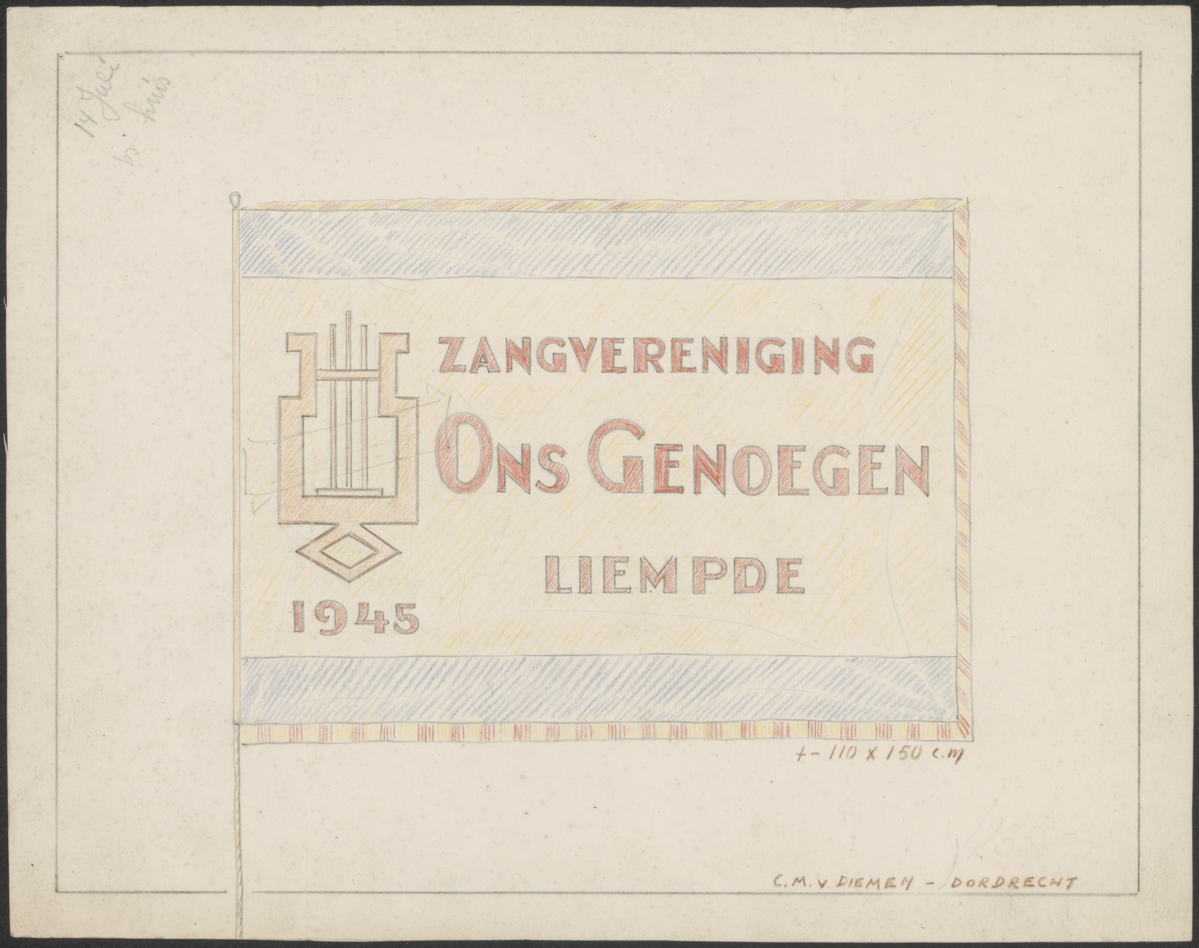 - Een vlag van de Zangvereniging 'Ons Genoegen' te Liempde, 1945.