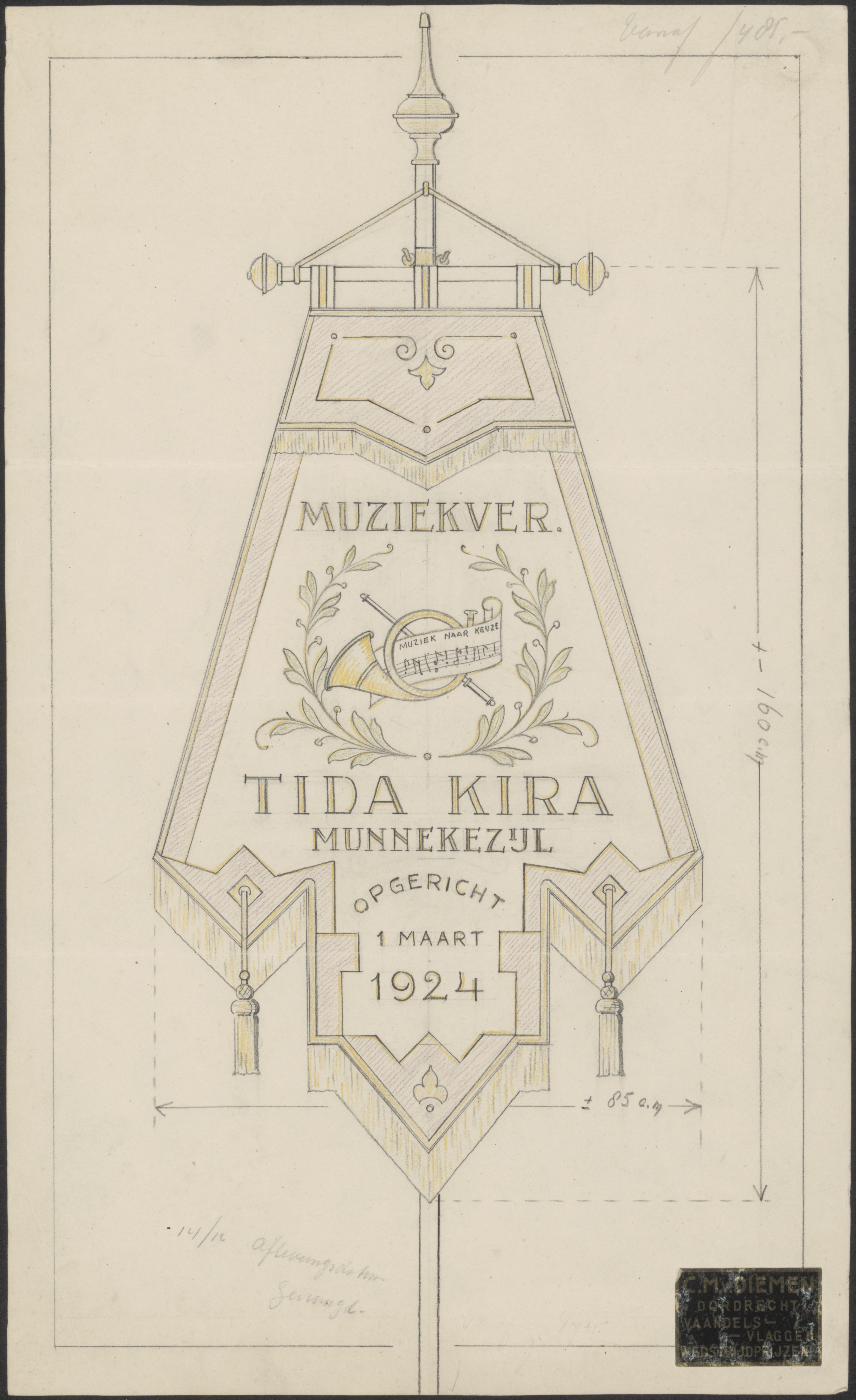 - Een vlag van de Muziekvereniging 'Tida - Kira' te Munnekezijl (Friesland); opgericht 1 maart 1924.