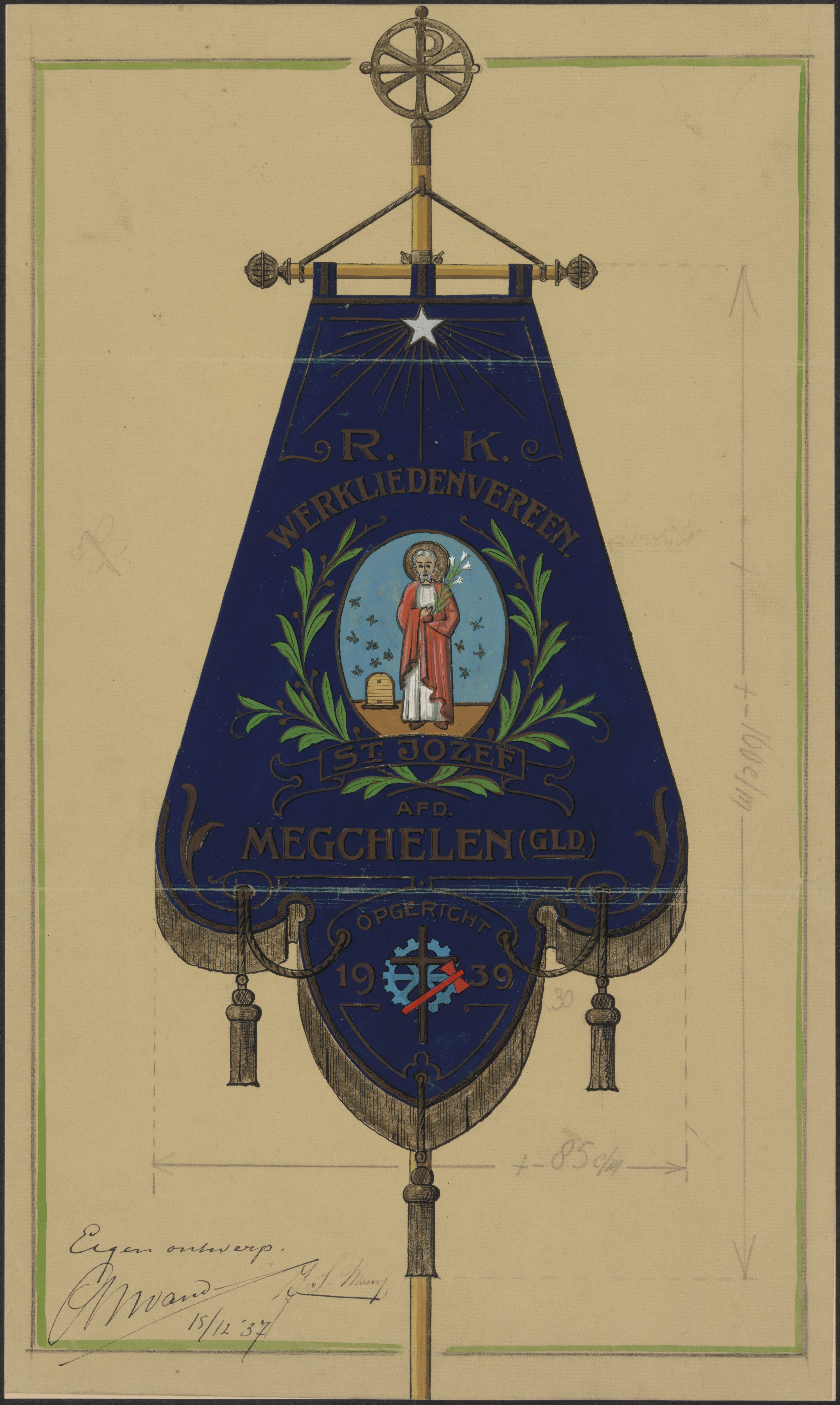 - Een vaandel van de R.K. Werkliedenvereniging 'St. Jozef' afd. Megchelen (Gld.); opgericht 1939.
