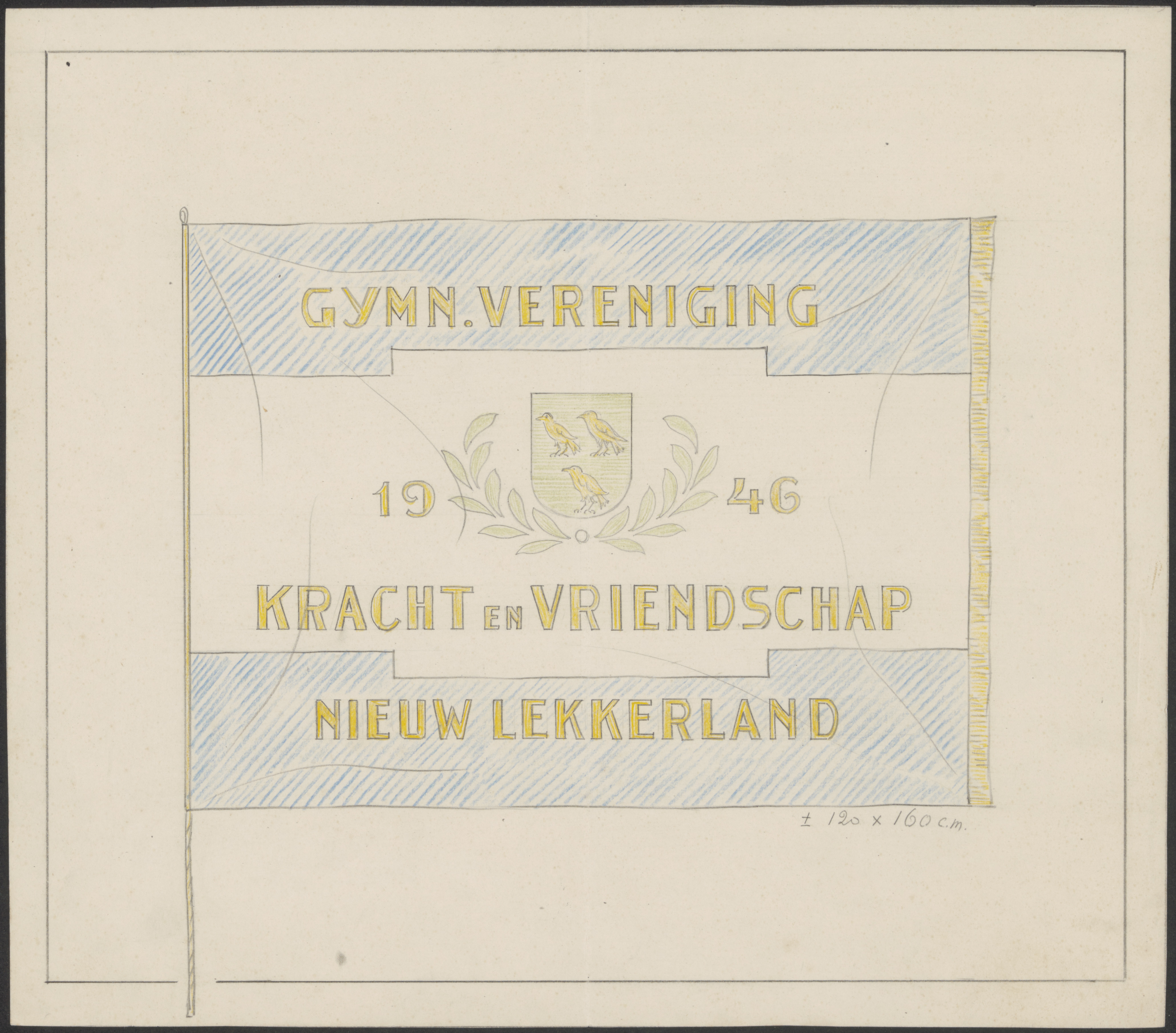 Een vlag van de Gymnastiek Vereniging 'Kracht en Vriendschap' te Nieuw Lekkerland, 1946.