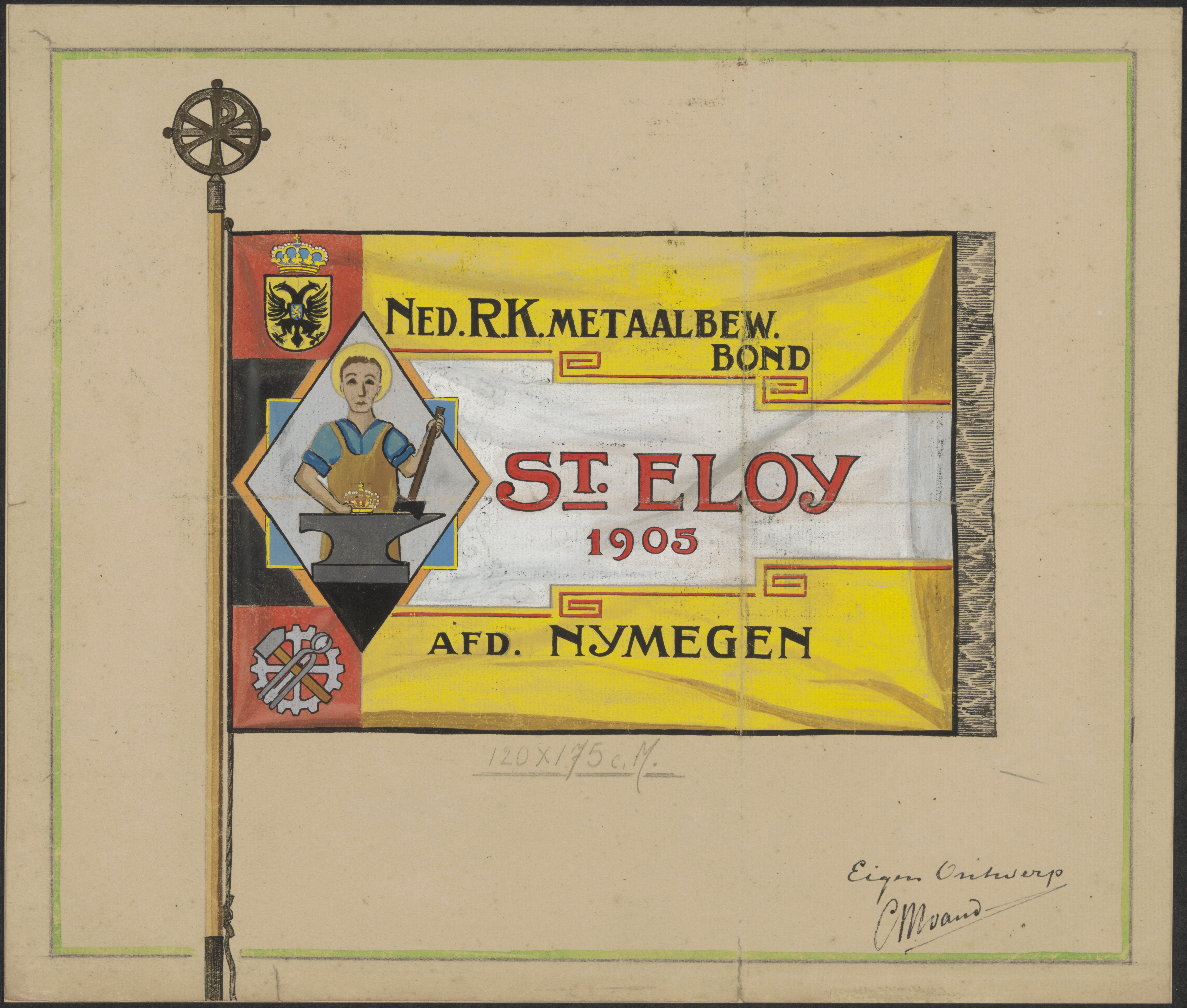 - Een vlag van de Nederlandse R.K. Metaalbewerkersbond 'St. Eloy' afd. Nijmegen, 1905.