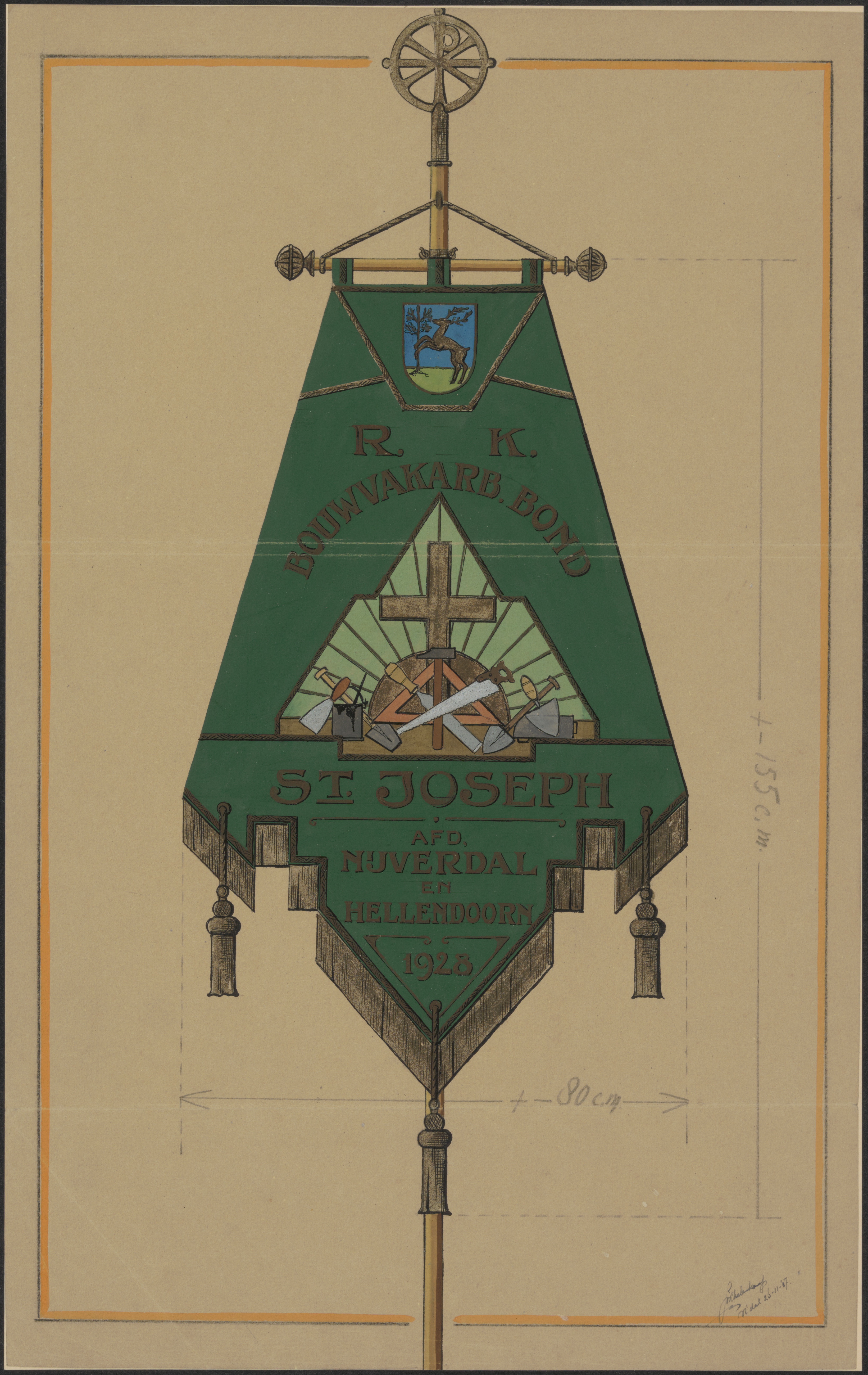 - Een vaandel van de R.K. Bouwvakarbeidersbond 'St. Joseph', afd. Nijverdal en Hellendoorn, 1928.