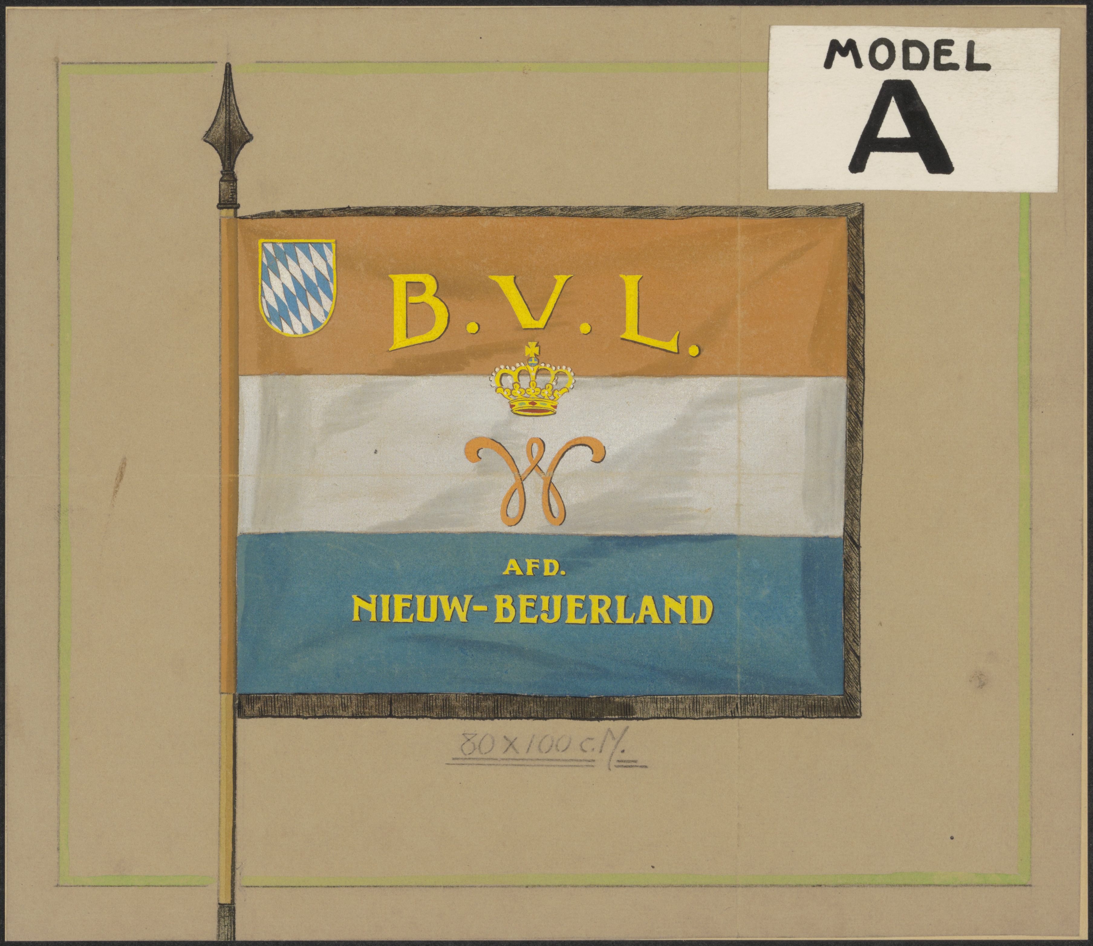 Een vlag van de B.V.L. (Bijzondere Vrijwillige Landstorm) afd. Nieuw-Beijerland.