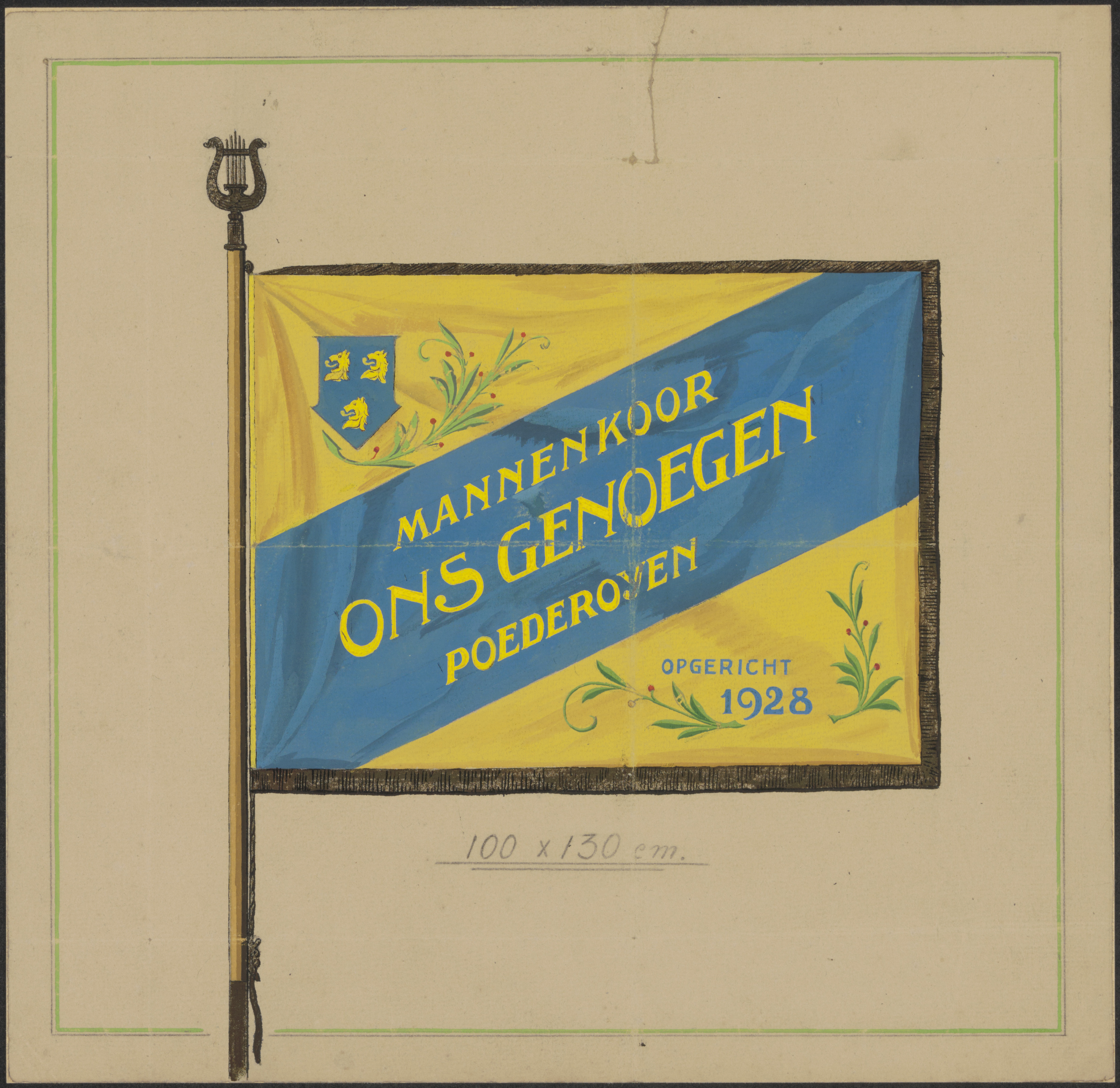 - Een vlag van het mannenkoor 'Ons Genoegen' te Poederoyen, opgericht 1928.