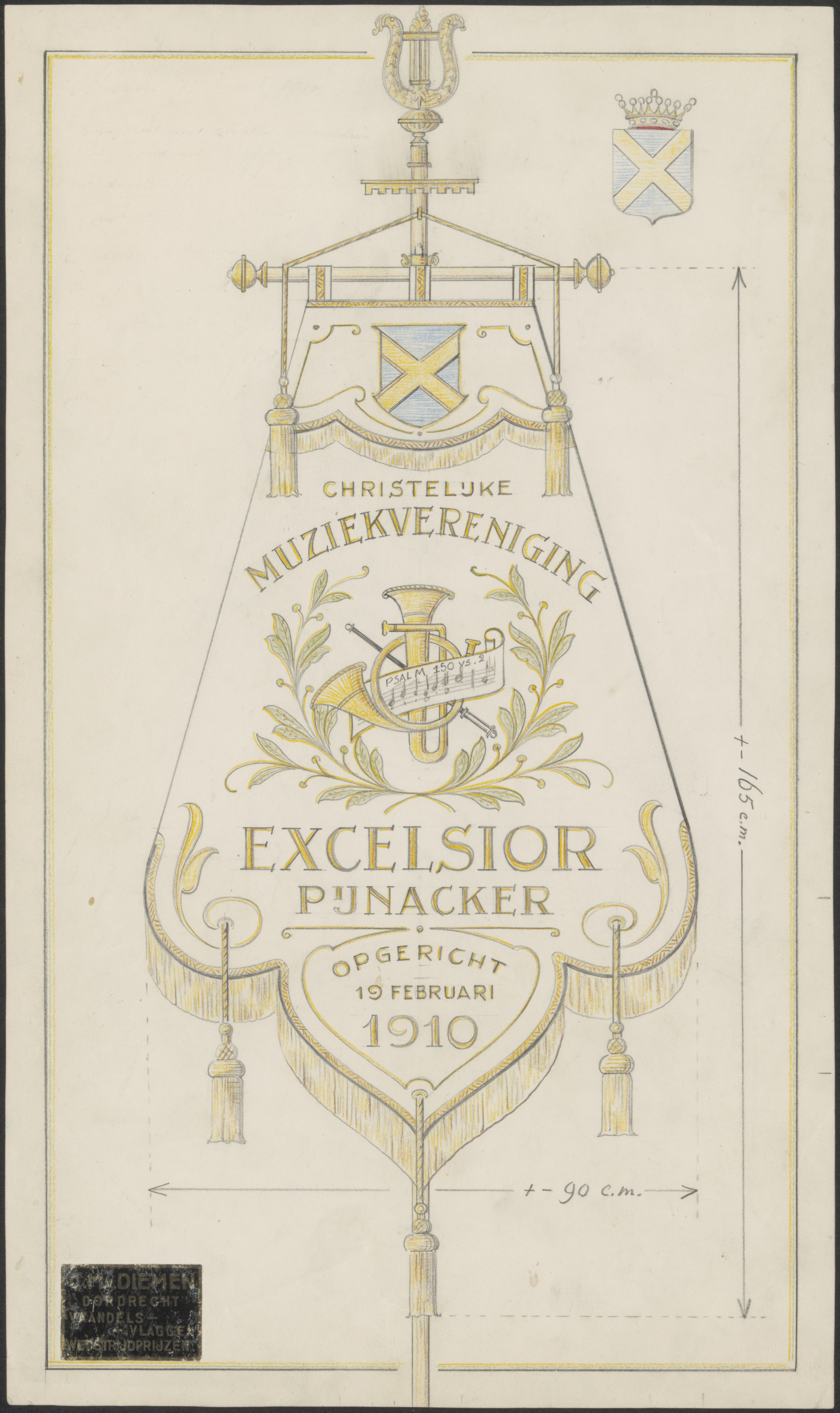 - Een vaandel van de Christelijke Muziekvereniging Excelsior te Pijnacker, opgericht 19 februari 1910.