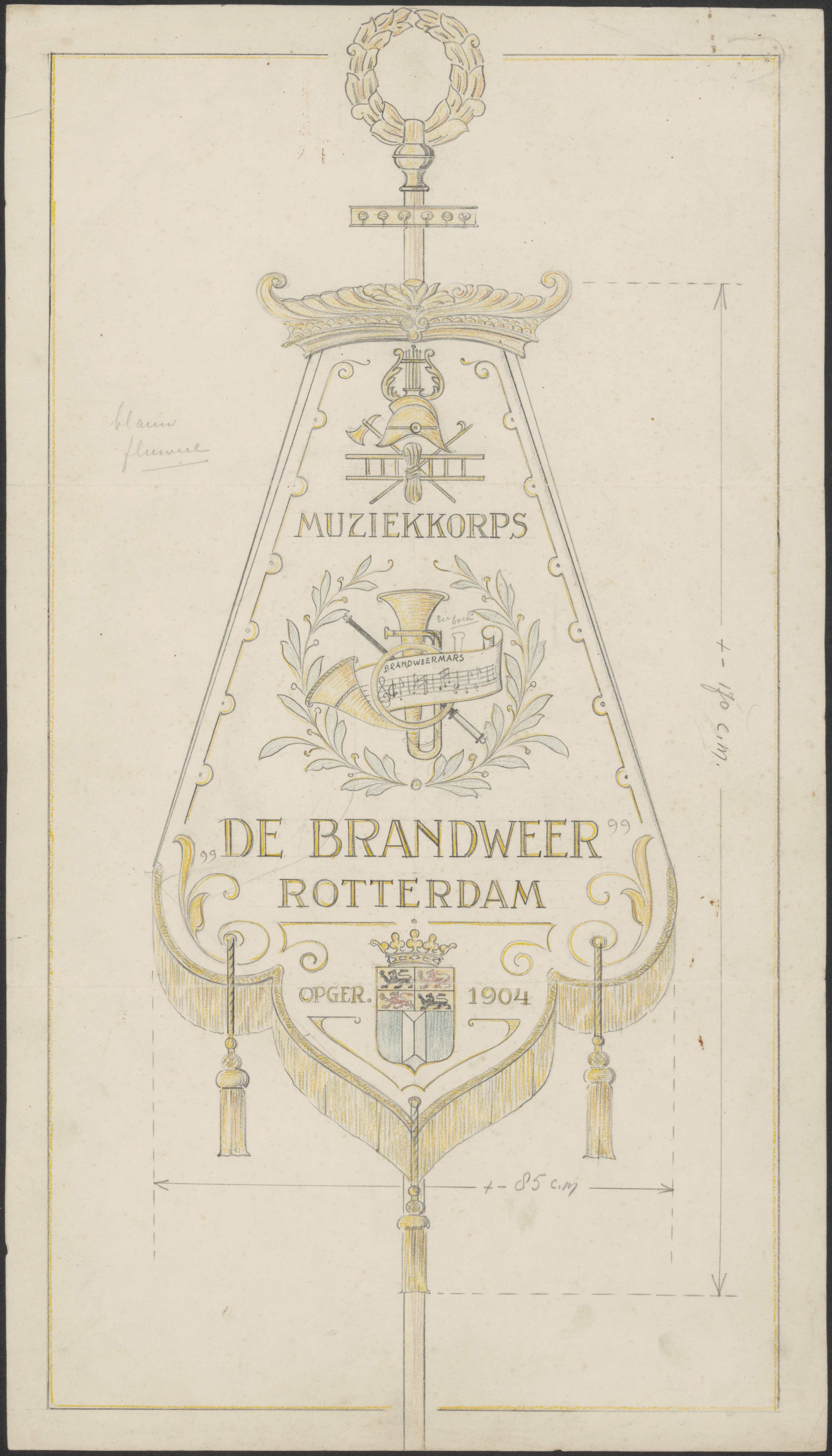 - Een vaandel van het Muziekcorps 'De Brandweer' te Rotterdam, opgericht 1904.
