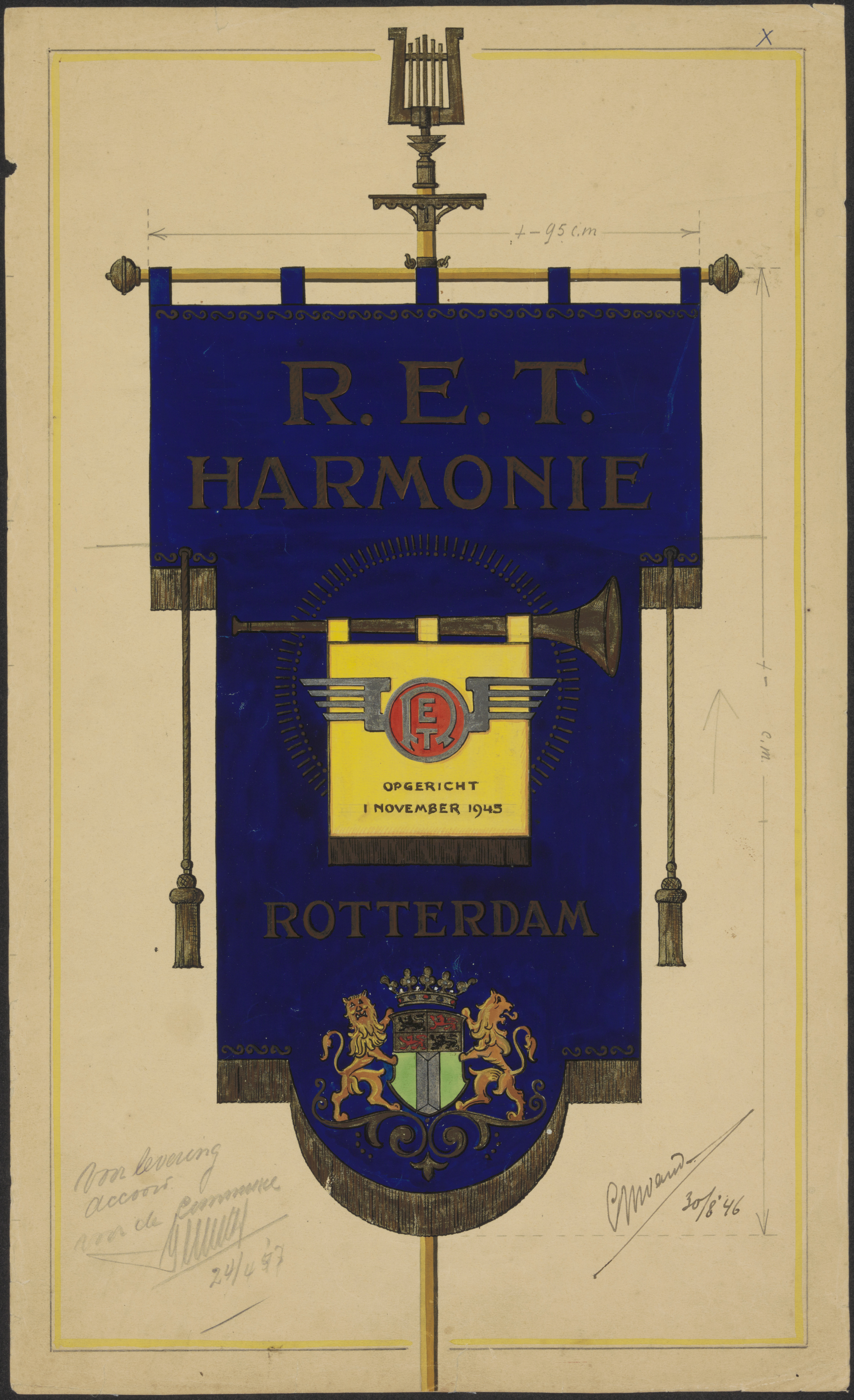 - Een vaandel van de R.E.T. Harmonie te Rotterdam, opgericht 1 november 1945.