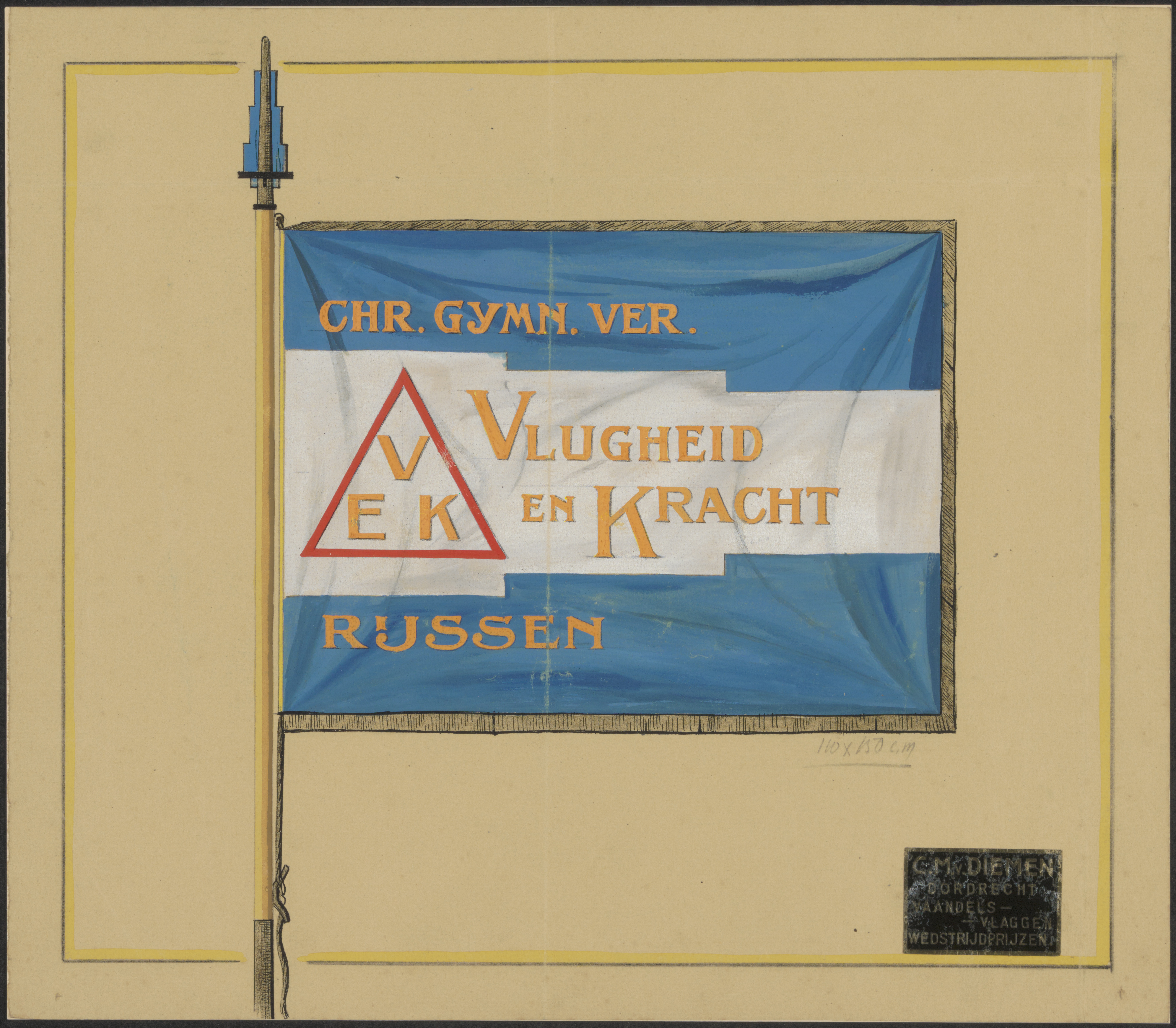- Een vlag van de Chr. Gymnastiek Vereniging 'Vlugheid en Kracht' (V.E.K.) te Rijssen.