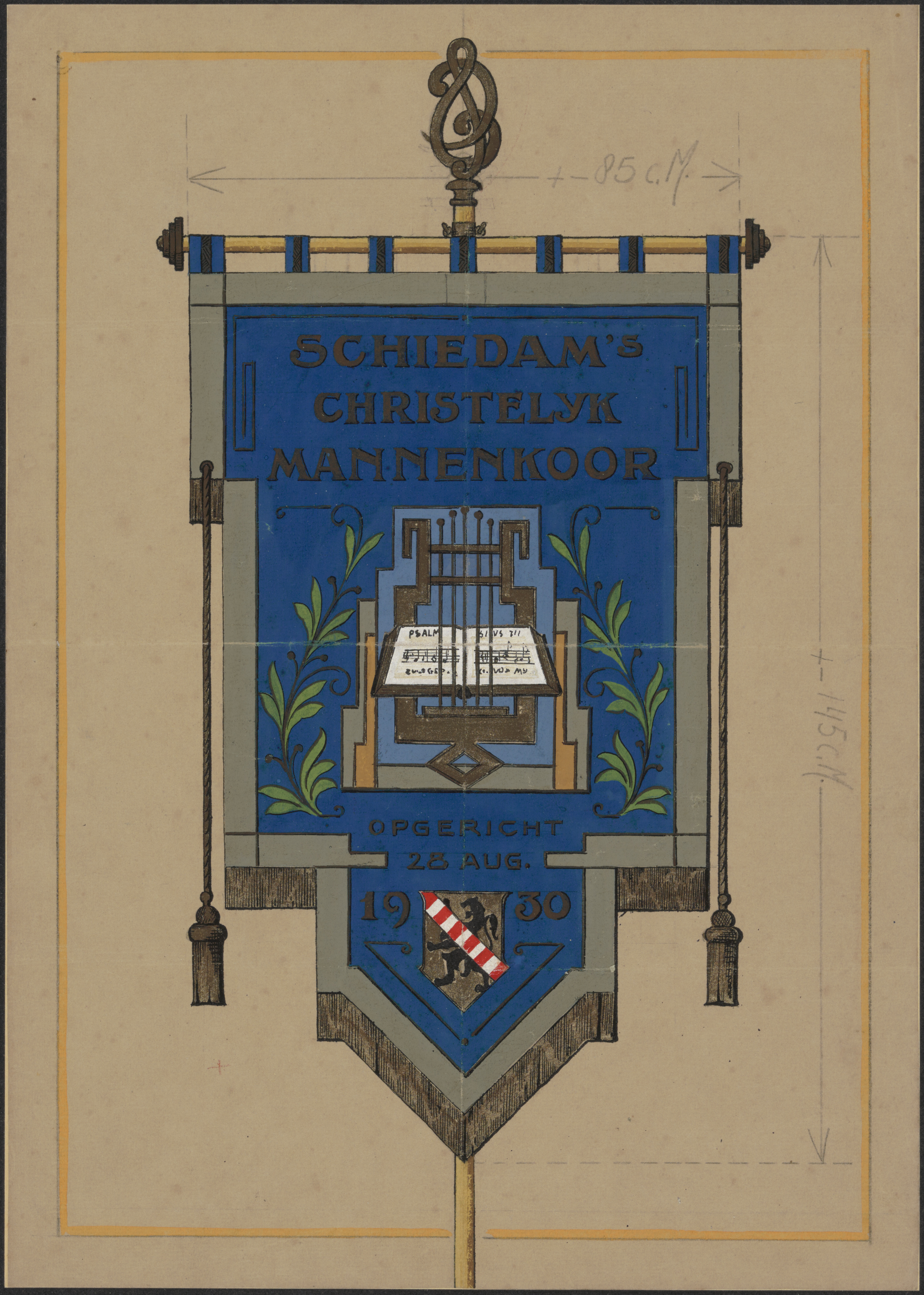 - Een vaandel van het Schiedam's Christelijk Mannenkoor te Schiedam, opgericht 28 augustus 1930.